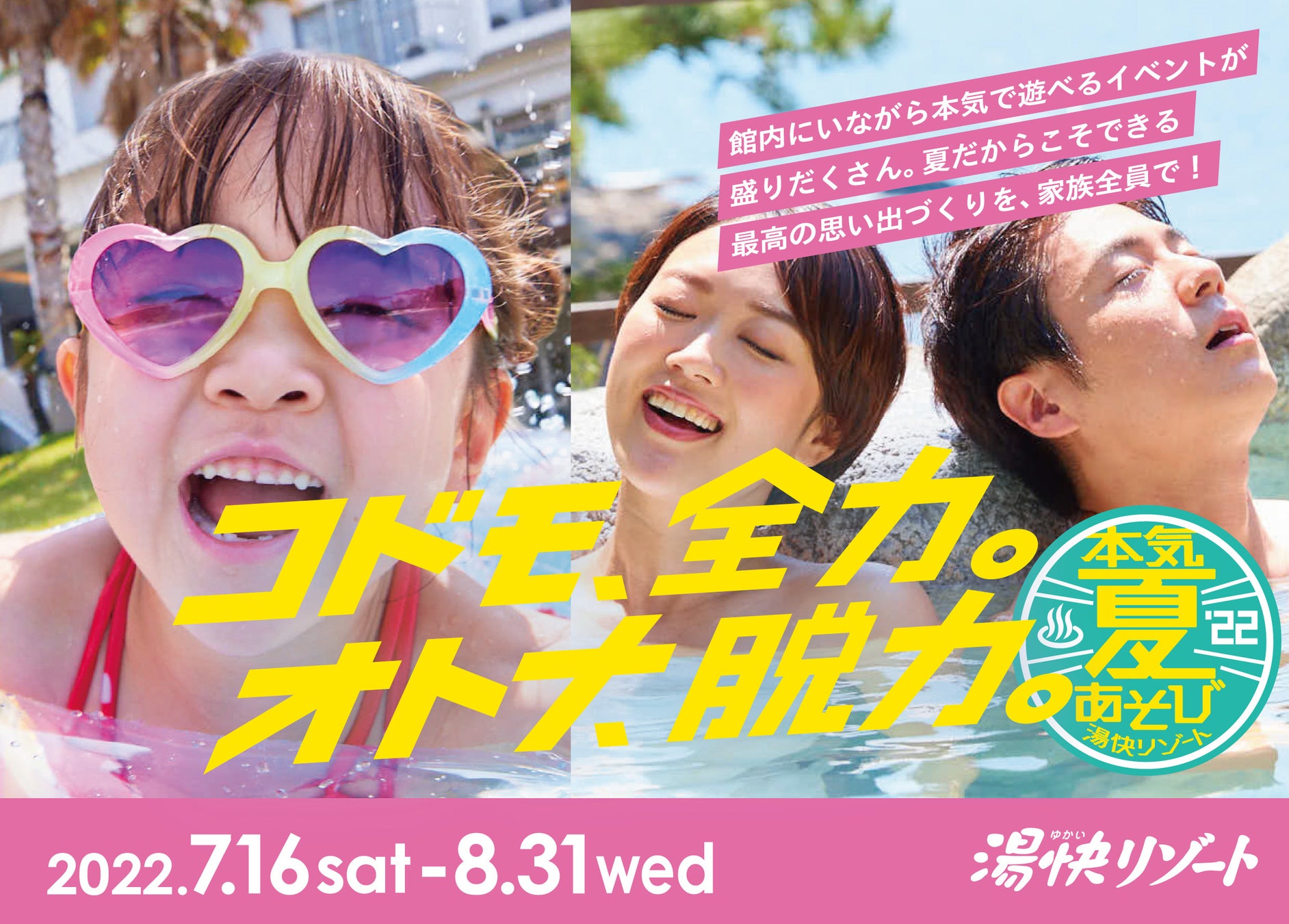 「日本の温泉を身近にする」を掲げ、温泉リゾート体験を提供する湯快リゾート株式会社(住所:京都府京都市 代表取締役社長:西谷浩司 以下、湯快リゾート)は、期間限定「本気夏あそびキャンペーン’22」を本日2022年7月16日(土)より開始いたします。