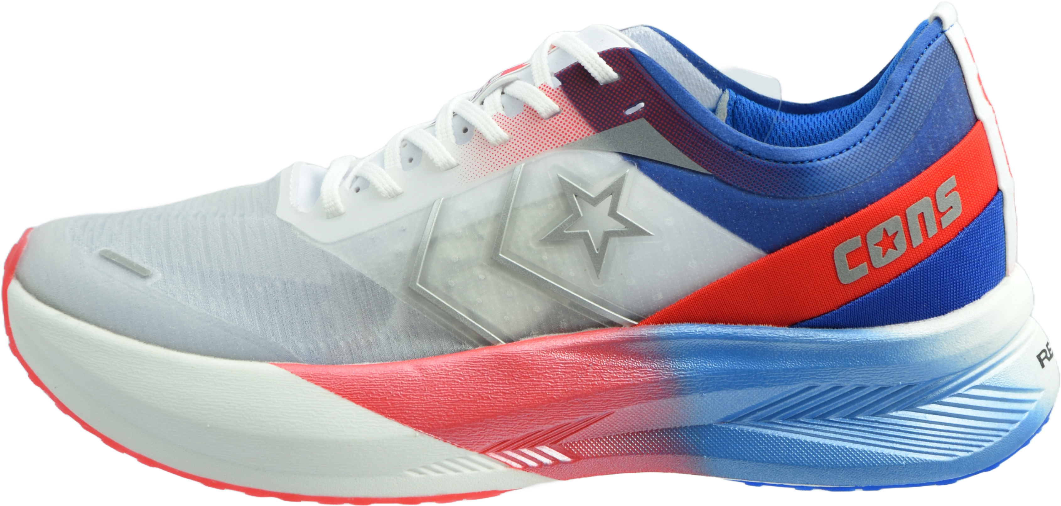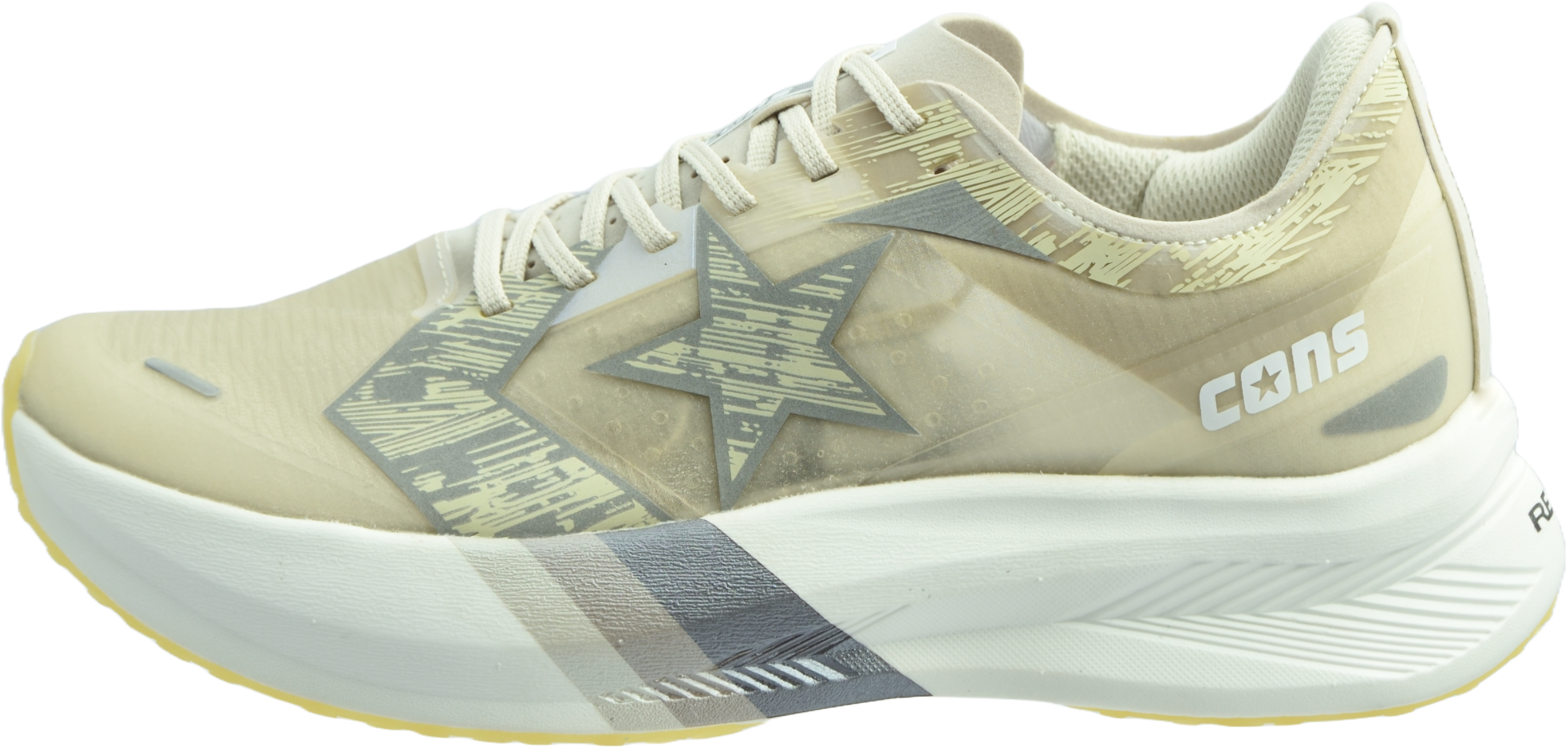 デビューイヤーから好評をいただく「CONS RUNSLASH」が軽量化されてパワーアップ。つま先から踵に向かってカーブしたミッドソール形状が踵部分をしっかりホールドし、安定感を向上。さらに、独自開発のY字形ガイディングカーボンプレートは、走行時のブレを抑え、正しいフォームをサポート。新たに採用された軽量性と通気性に優れたメッシュは快適な足運びを実現します。
