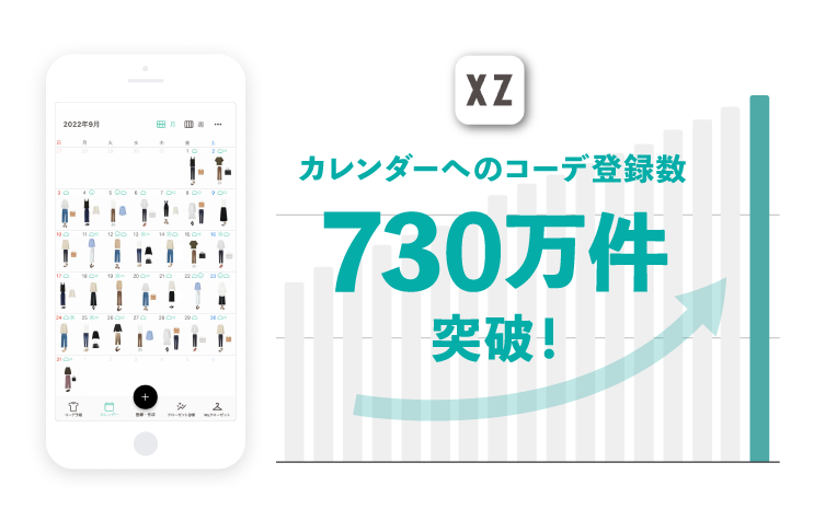「XZ(クローゼット)」は、持っている服をアプリに登録することで、クローゼットの中身をデジタル化できるオンライン・クローゼットアプリです。AIスタイリストによる持っている服を使ったコーディネート提案機能や、着用したコーディネートを記録できるカレンダー機能を搭載し、毎日のコーディネートを考える際にご活用いただいております。