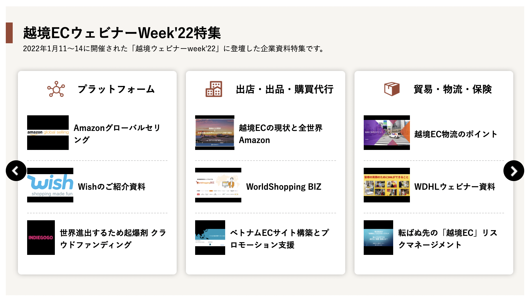 - 越境ECウェビナーWeek'22特集の掲載資料一覧