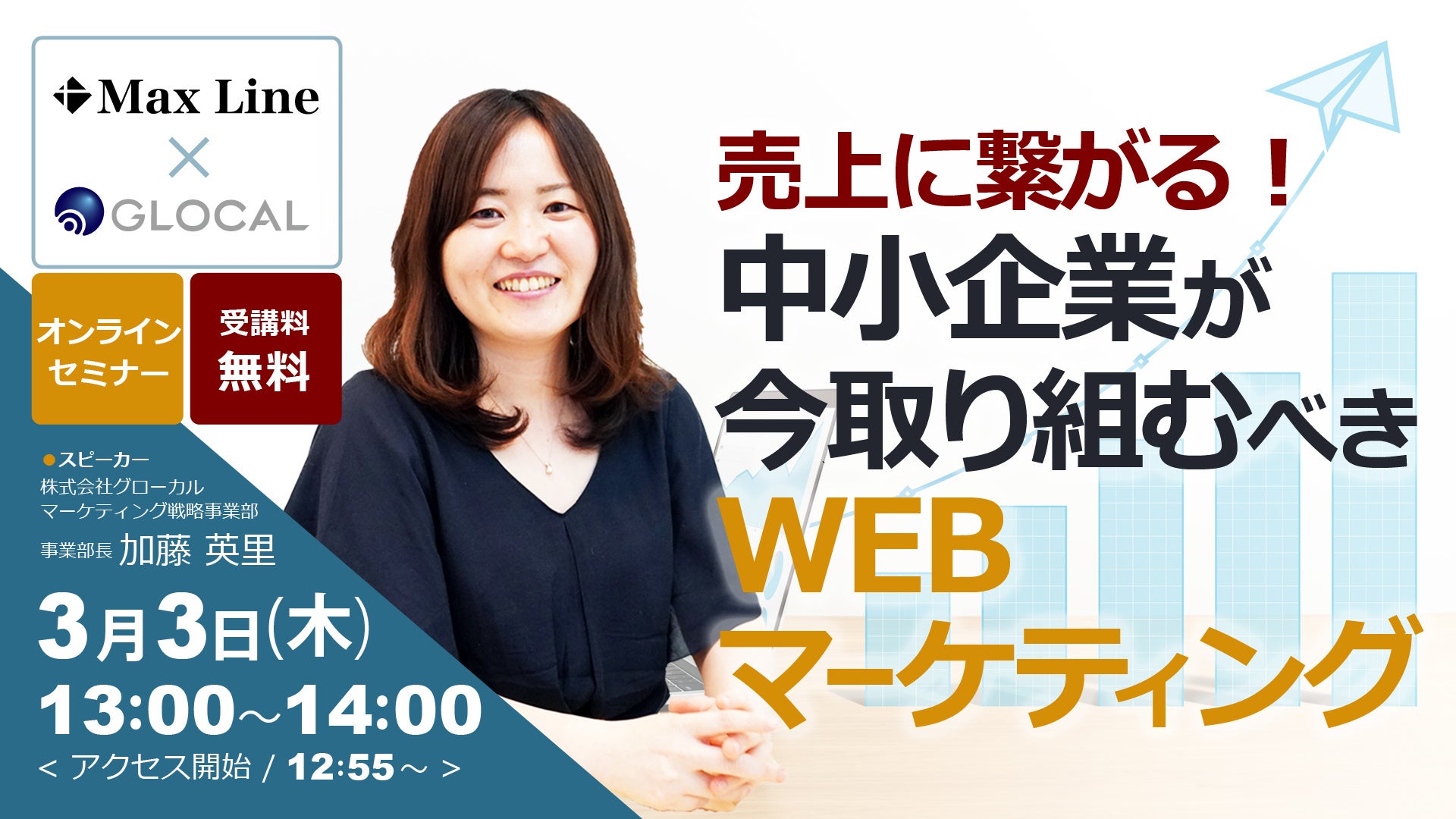 【3/3開催】WEB制作を専門とするマックスライン主催・中小企業のマーケティングを解説する無料オンラインセミナーに、グローカルのマーケティング戦略事業部長の加藤が登壇