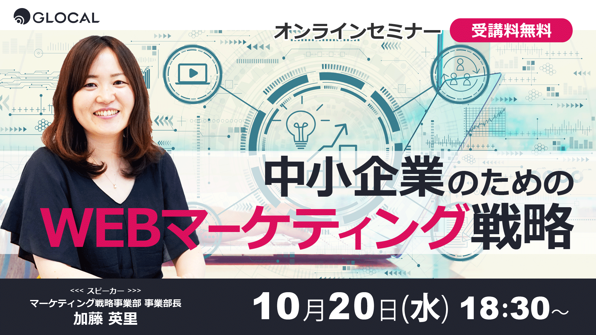 グローカルは、地域の中小企業に特化した経営支援を行なっており、その一環として無料のオンラインセミナーを2020年7月より実施しています。地方中小企業が、時間や場所の制約なく最新の情報を収集できる手段として、オンラインセミナーをより拡充していきます。