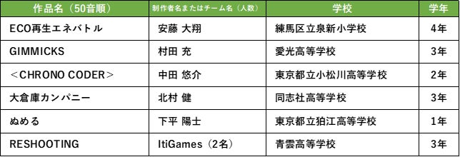 日本ゲーム大賞 2022「U18部門」決勝大会進出作品(作品名50音順)