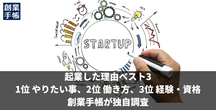 起業した理由ベスト3、1位 やりたい事、2位 働き方、3位 経験・資格|創業手帳が独自調査