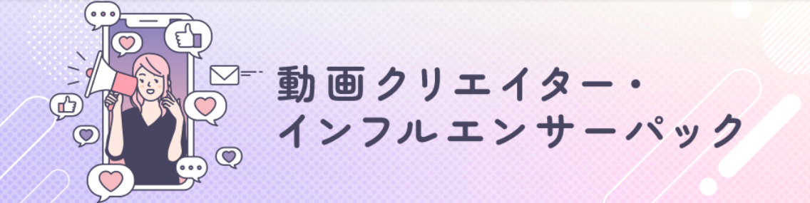 「動画クリエイター・インフルエンサーパック」の詳細は、以下よりご覧ください。