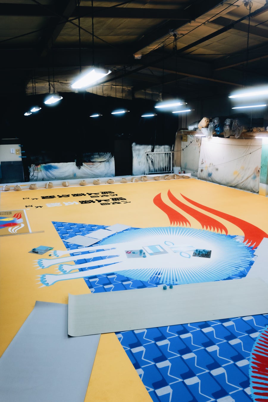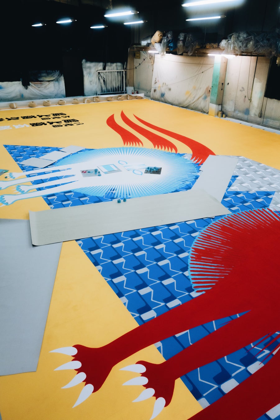 「有名な連獅子―父と子が長い毛を振り、舞う姿―を描き、モワナの“M”モノグラムで富士山を表現しました。伝統を守りながら、新たな創造性を絶えず取り入れ、いかにそれが世代を超えて受け継がれていくかを表現したかったのです。」
