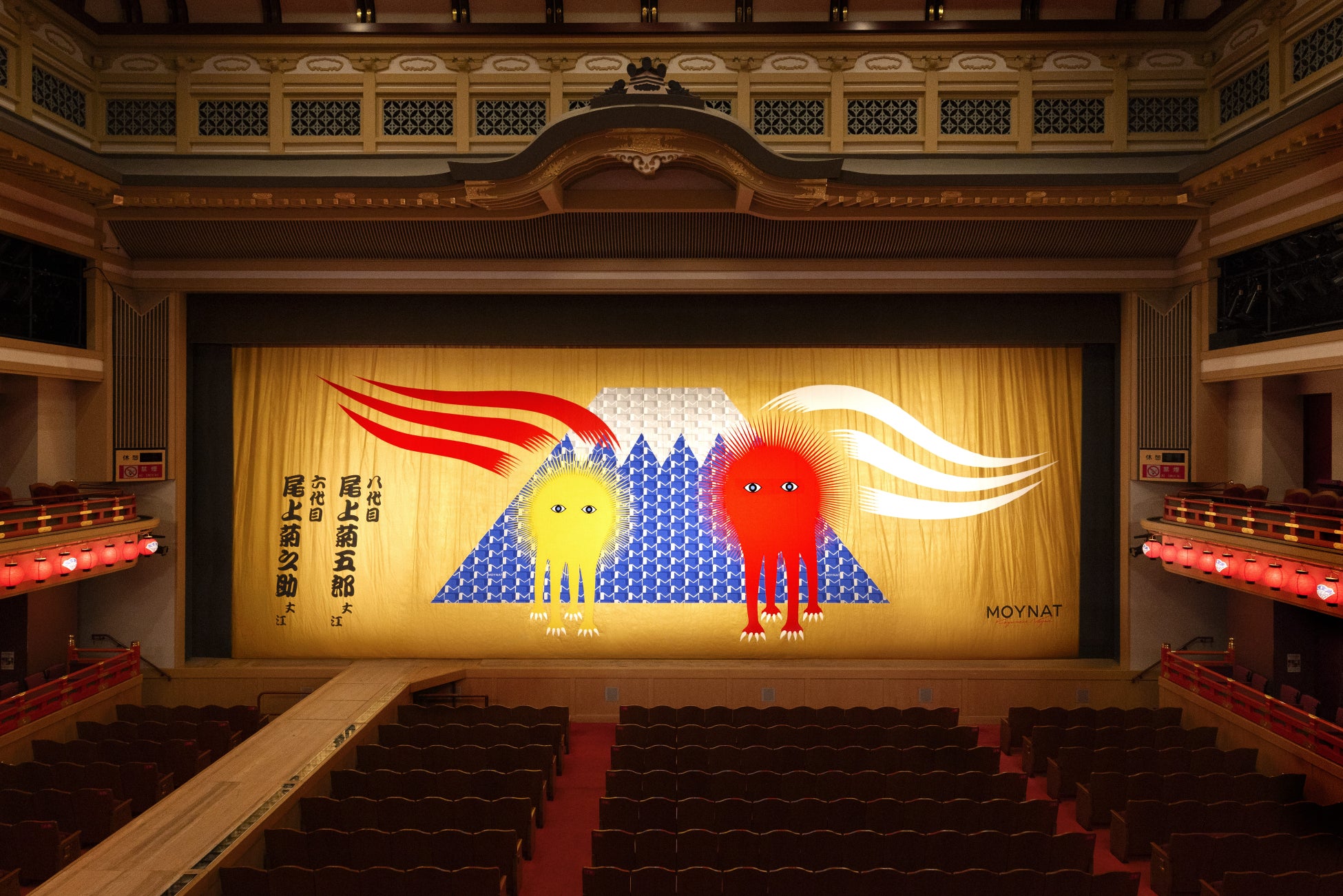 モワナ(MOYNAT)と永井一正氏・日本デザインセンターのコラボレーションによる八代目尾上菊五郎丈、六代目尾上菊之助丈の襲名を寿ぐ特別な祝幕を京都 南座にて披露