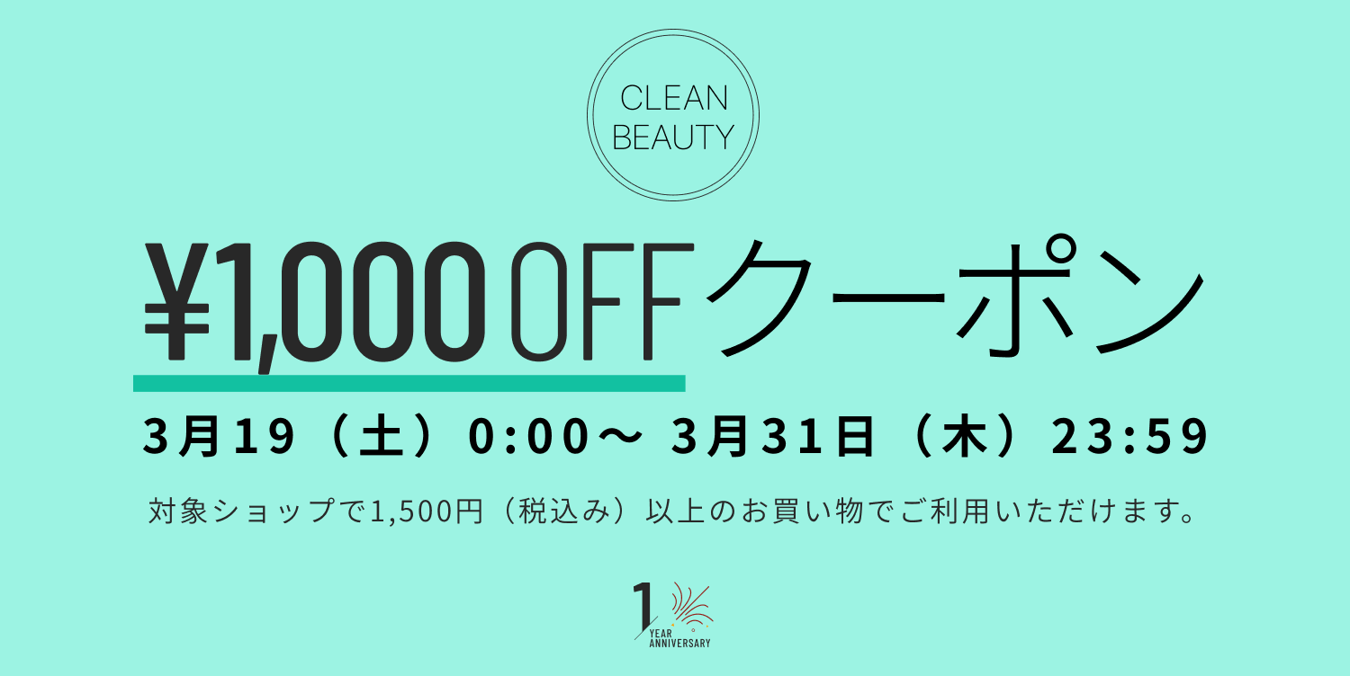 期間中クリーンビューティーブランドで1,500円以上(税込)の購入に使える1,000円OFFクーポンをプレゼント