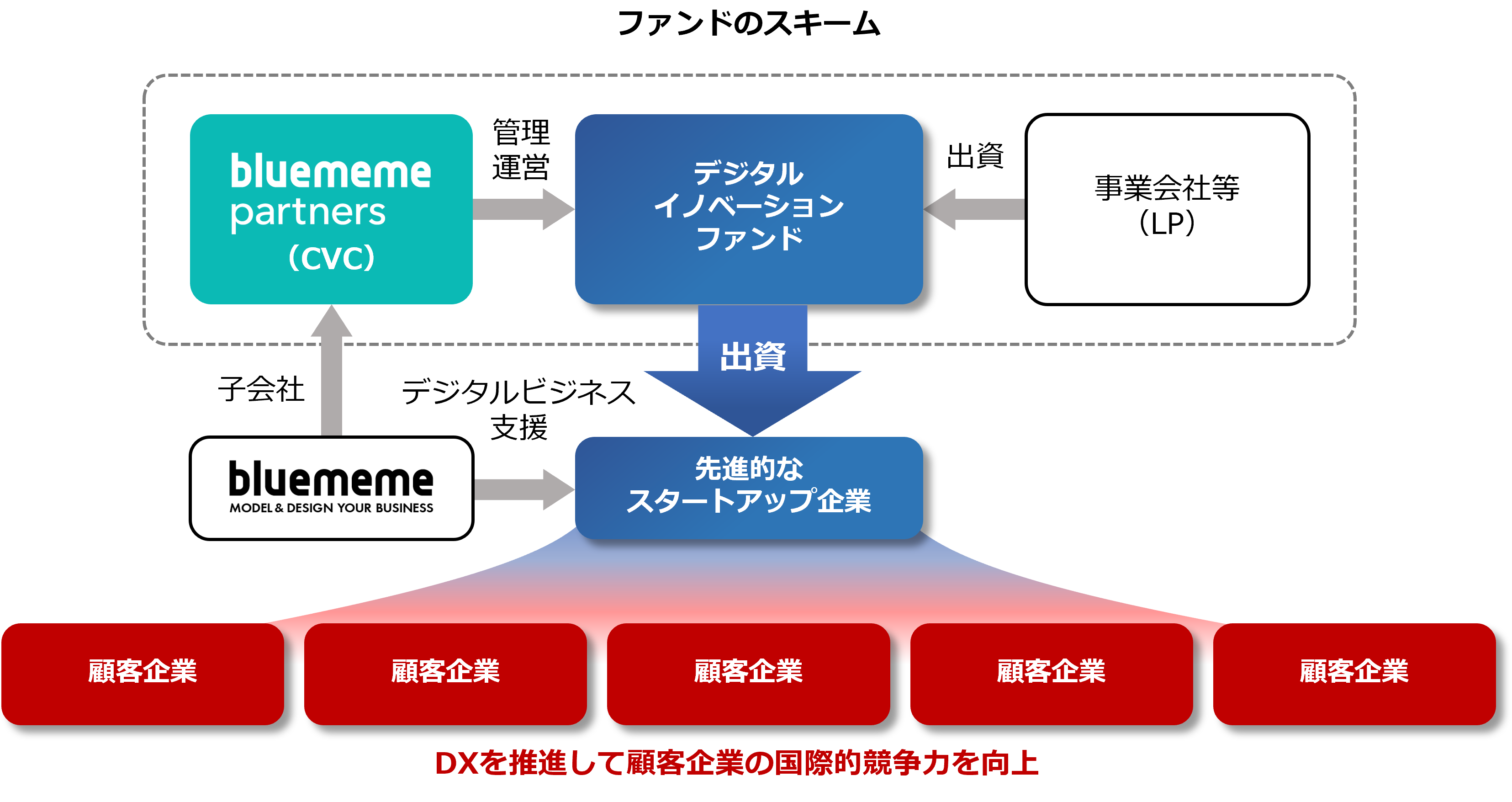 設立後は、ファンド組成に向けた活動を行い、ファンドからの投資を通してベンチャー企業への企業価値向上支援を行っていきます。