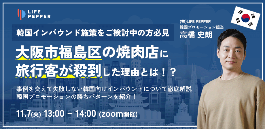 【11/7(火)ウェビナー開催】海外マーケティング支援数 1,000 社以上のLIFE PEPPERが、韓国インバウンドの効果的なプロモーションについて解説