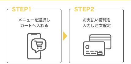 店頭やフードコート内の席に貼付されたQRコードをスマートフォンで読み取り、各店舗ページからメニューを閲覧、選択します。