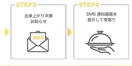 注文した料理の準備が完了すると、店舗からSMS通知でお知らせします。