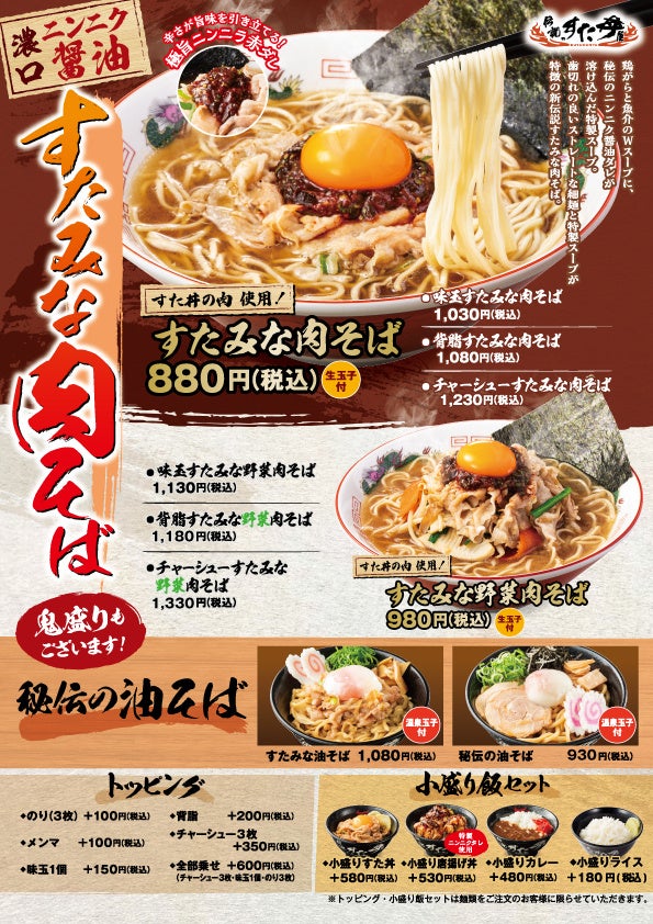 【すた丼の魂を受け継いだ至極の一杯!すたみな肉そばが登場!】