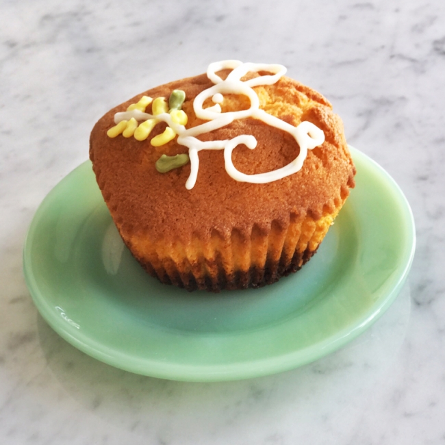 うさぎのアイシングが目印の「イースターケーキ」は、バニラビーンズ入りの生地の下にほろ苦いカラメルを敷いた、カスタードプリン味。