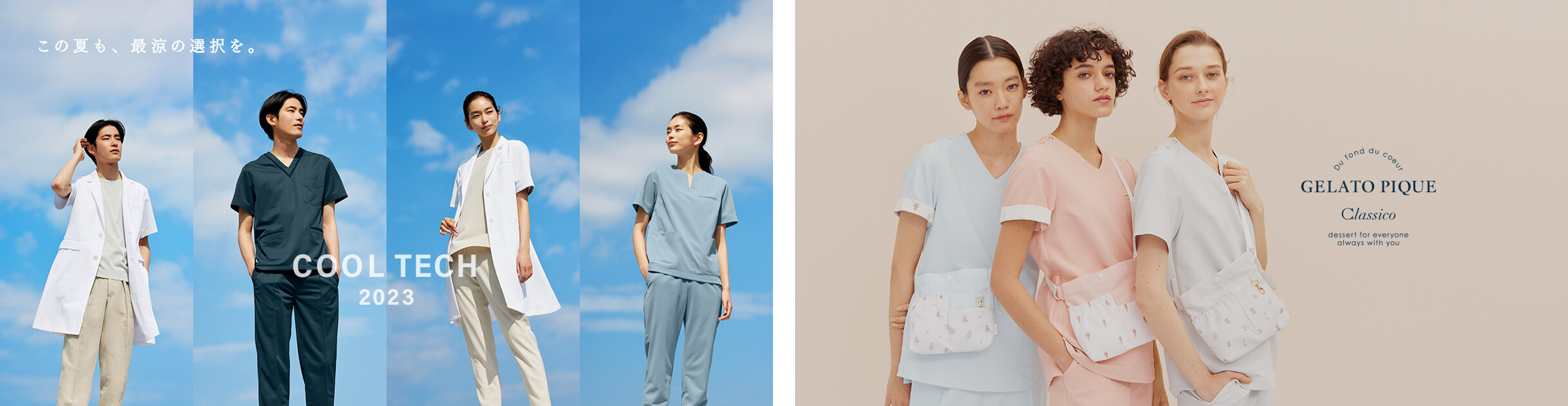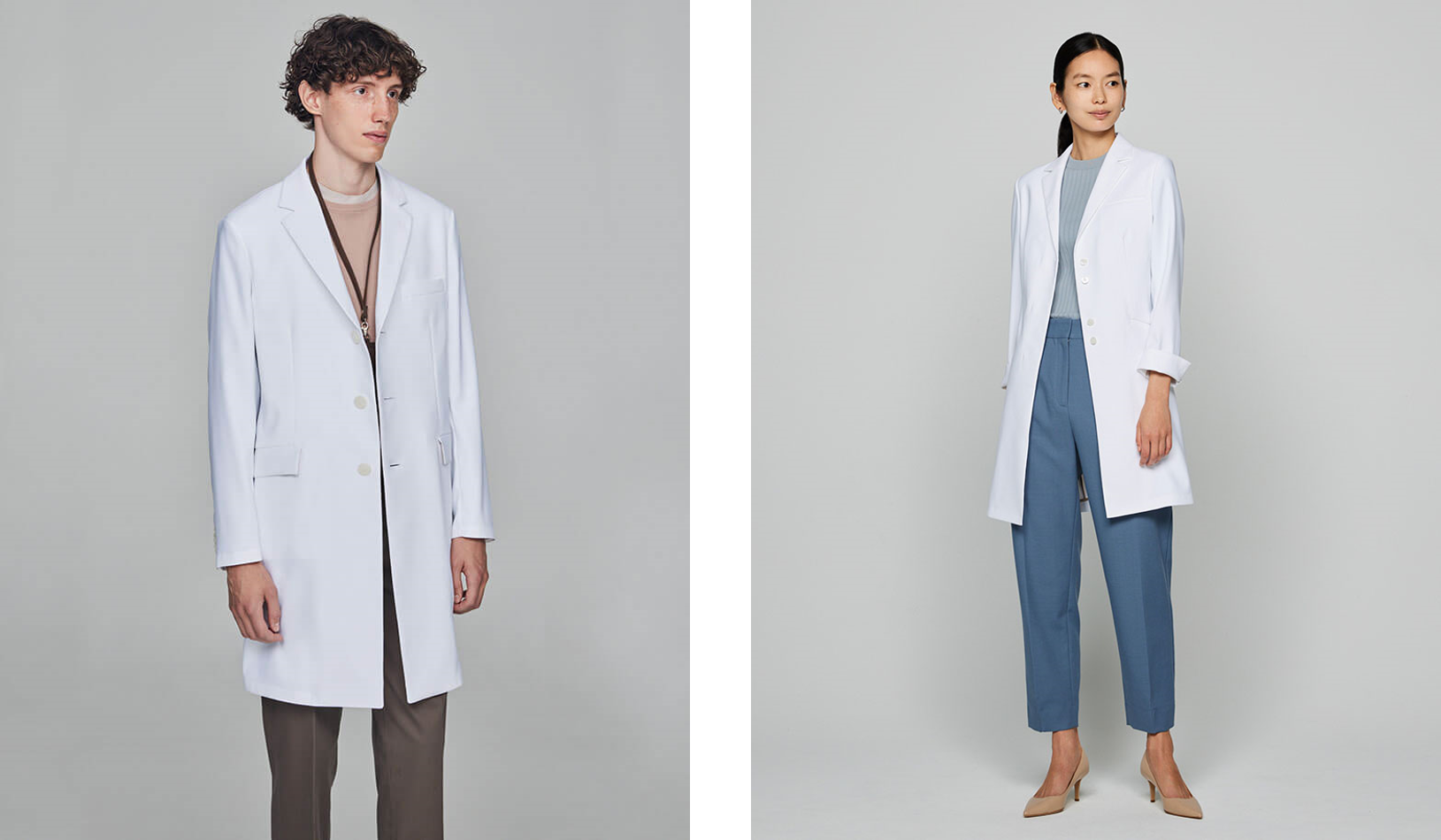 イタリアンテーラード仕立てのスタイリッシュな白衣をはじめとする医療ウェア、