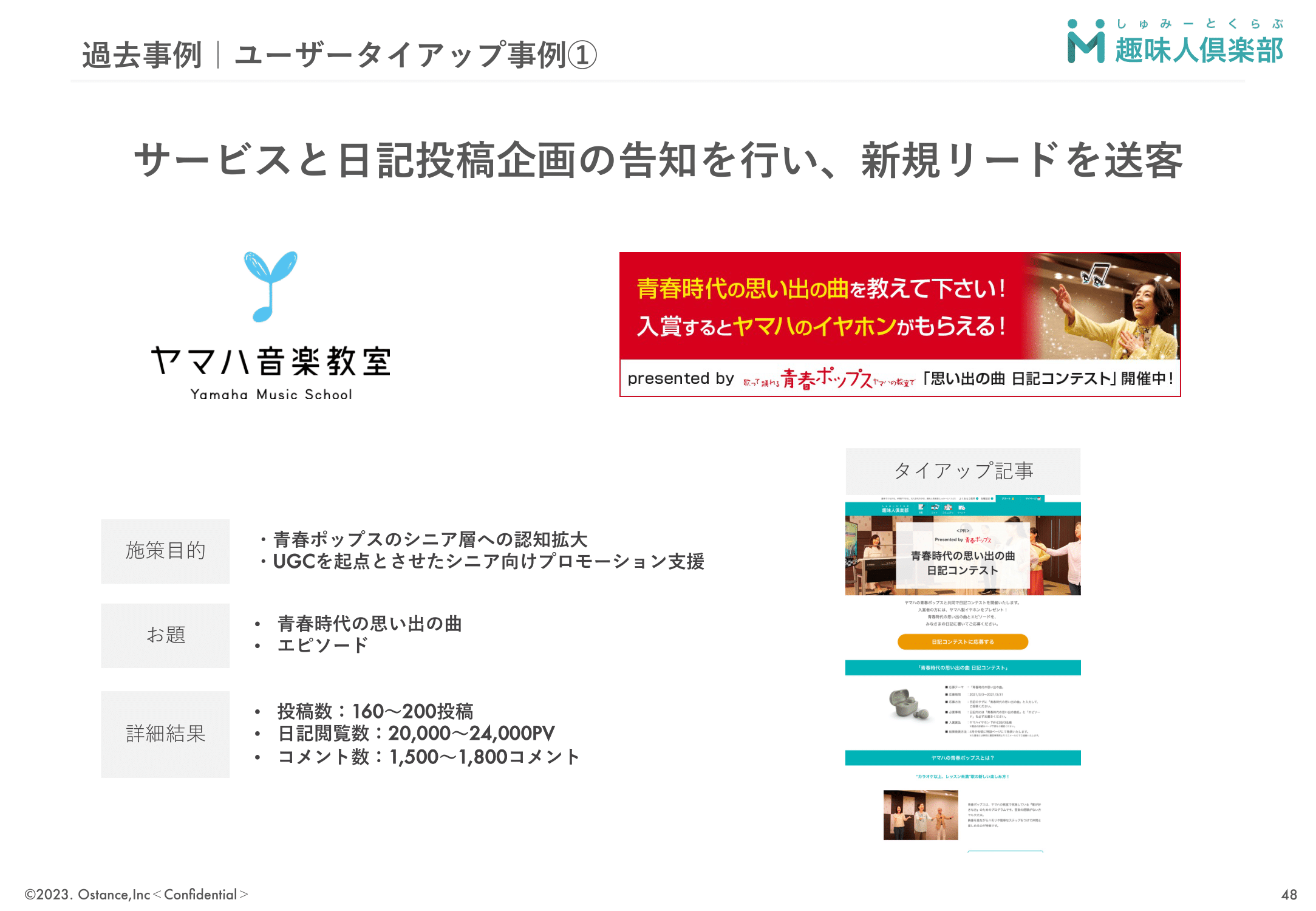 シニア・中高年の方々が交流するコミュニティサービス「趣味人倶楽部」を運営する株式会社オースタンス(本社:東京都渋谷区/代表取締役社長:菊川諒人)は、ユーザーの日記投稿を活用したユーザータイアップメニューを本格提供開始いたしました。