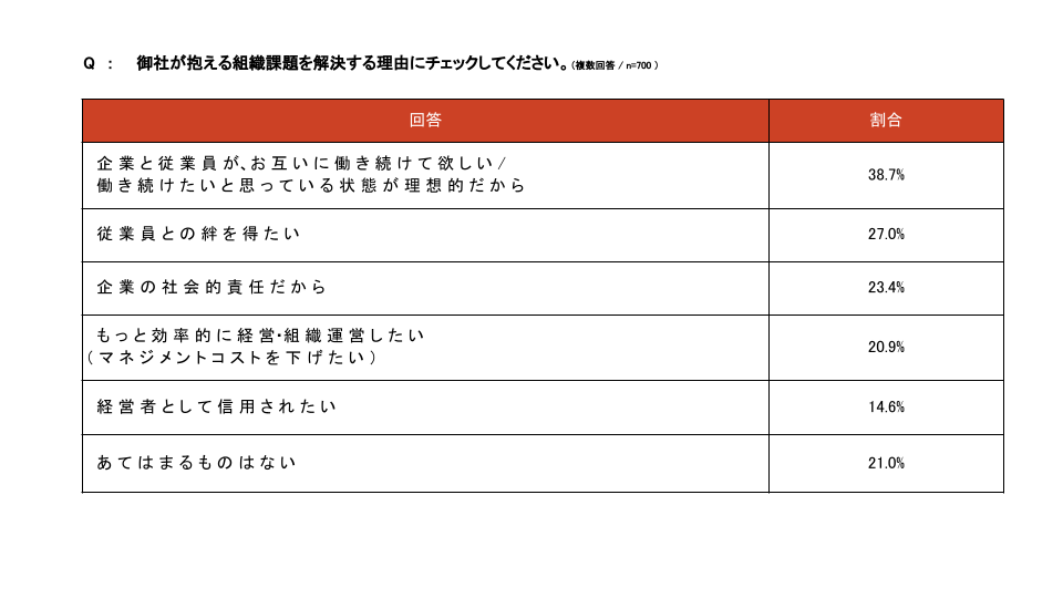 調査対象者の約4社に1社*が組織課題の解決に対して、