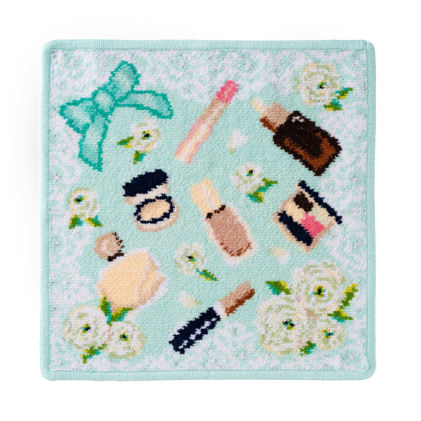 この特別なコラボレーションにより誕生したのは、エスティ ローダーを象徴するアイテムたちが織り上げられた限定デザインのオリジナル ハンカチ。ブランド カラーである“エスティ ブルー”を基調に、ベストセラー美容液「アドバンス ナイト リペア」や、“くずれない支持率No.1”を誇るファンデーション「ダブル ウェア」、さらにリップスティックやフラグランスなどが、ブランド創設者ミセス エスティ ローダーが愛した花々とともに描かれ、まるで洗練された化粧台のようなデザインに仕上げられています。