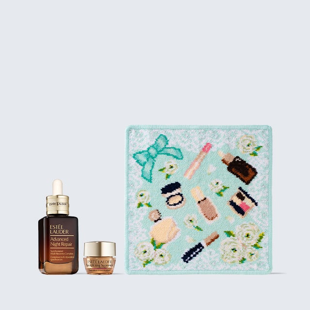 夜間美容のエキスパートであるエスティ ローダーのベストセラー美容液「アドバンス ナイト リペア」の20mLサイズをメインに、様々なエイジング サインに働きかけ、スフレのように軽いテクスチャーが春に嬉しい「シュープリーム プラス YP クリーム」のスペシャル サイズ、そしてエスティ ローダー×フェイラー コラボレーション限定ハンカチをセット。エスティ ローダーの製品をまだお使いいただいたことのない方にまず試していただきたいアイテムとして、大切な人へのギフトにおすすめのセットです。