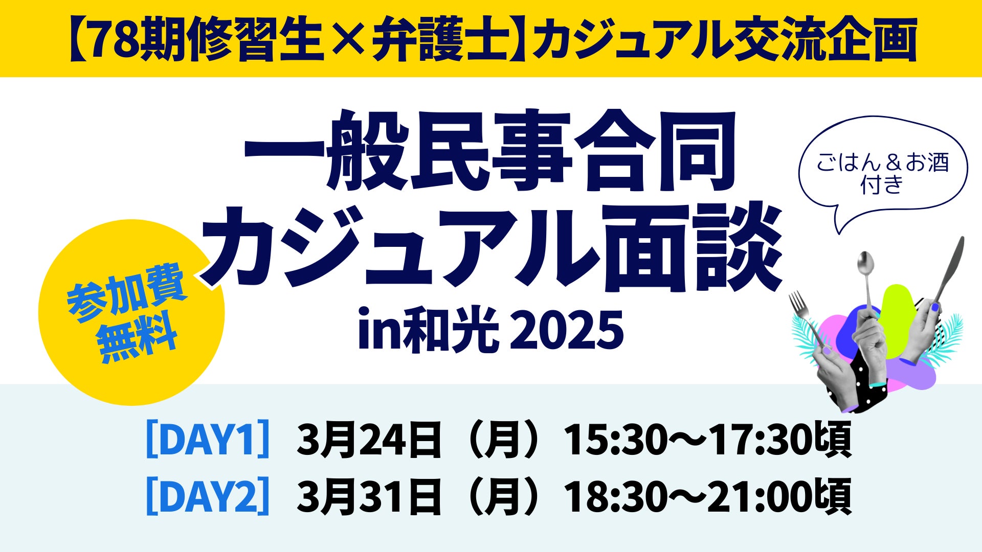 【78期修習生×弁護士】カジュアル交流企画『一般民事合同カジュアル面談』|3月24日、3月31日に和光市で開催