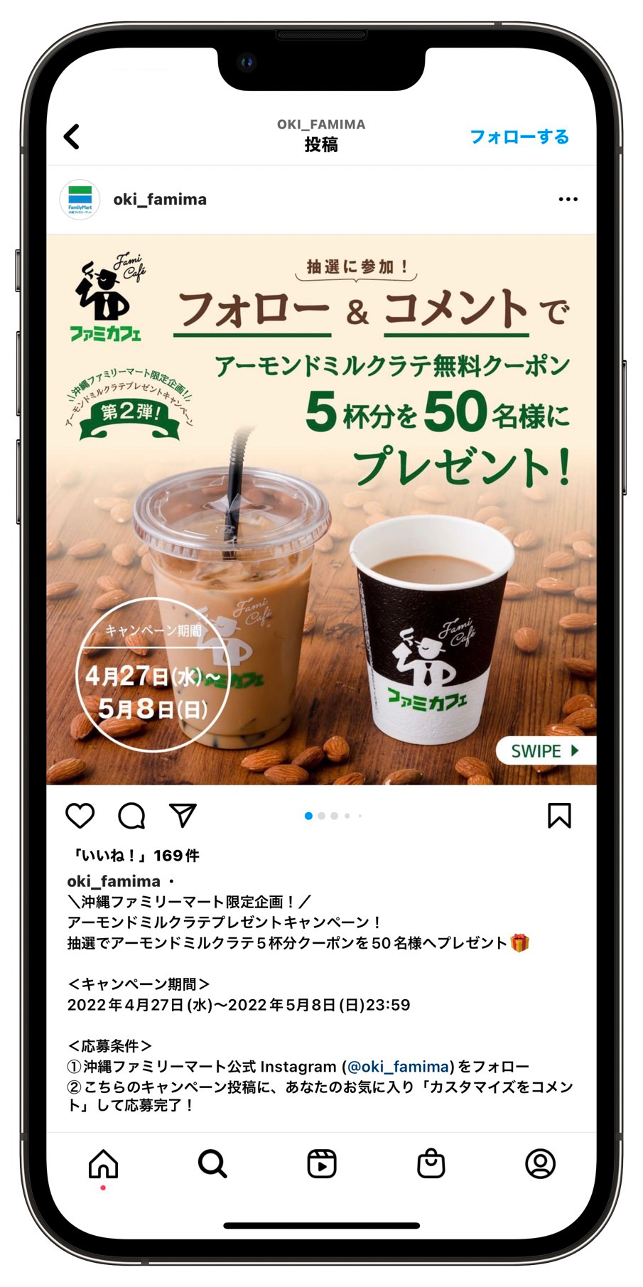 ①公式Instagram(@oki_famima)をフォロー