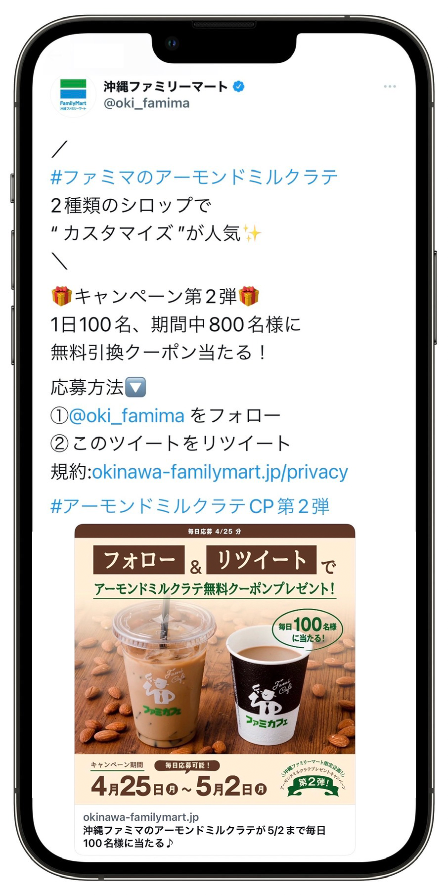 ①公式Twitter(@oki_famima)をフォロー