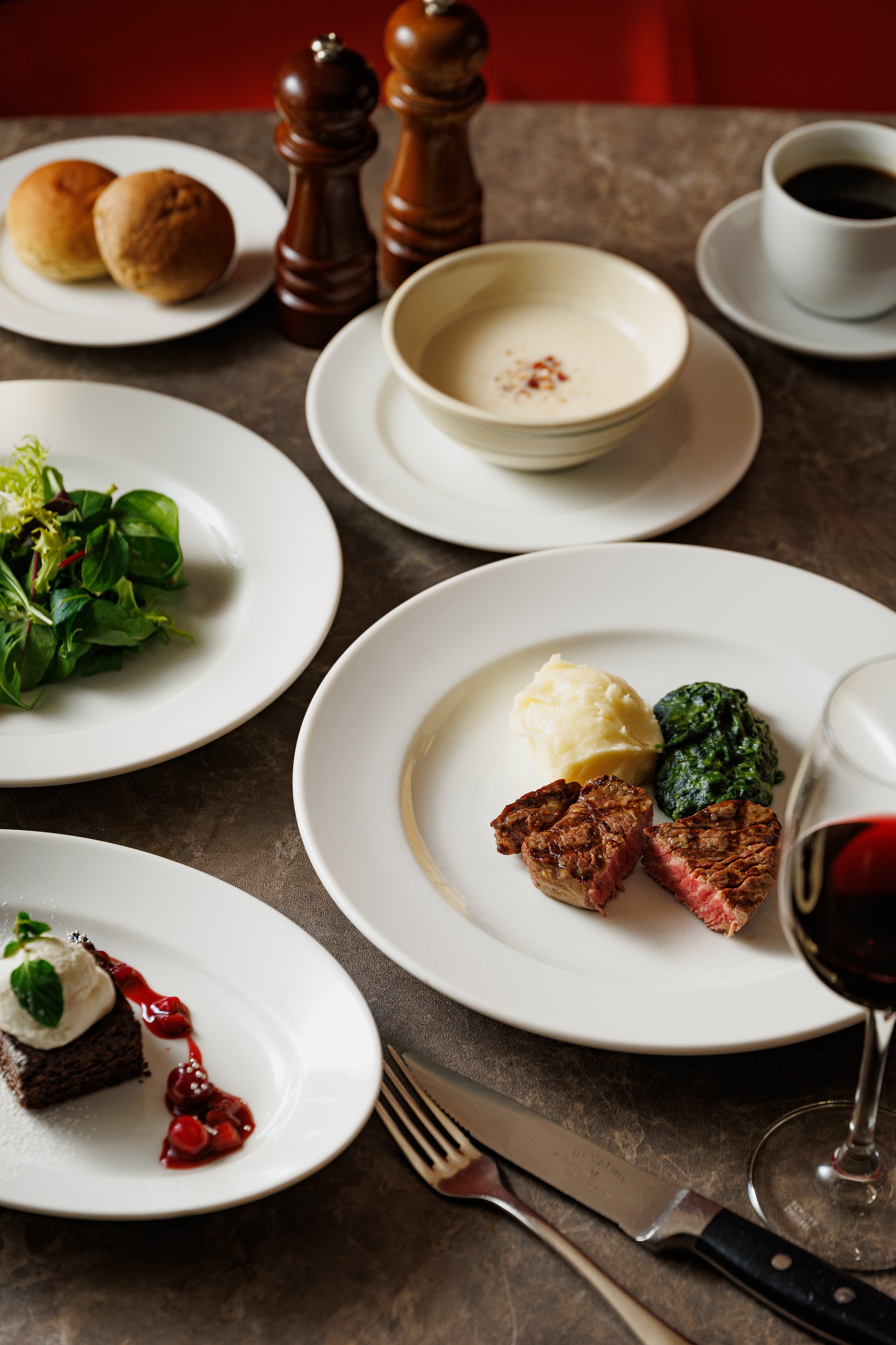 いずれのプランにも、USDA認定プライムビーフを中心に構成し、前菜からデザートまでのコース仕立てに加え、フリーフローを組み合わせることで、祝宴の席にふさわしいゆとりある時間を演出します。