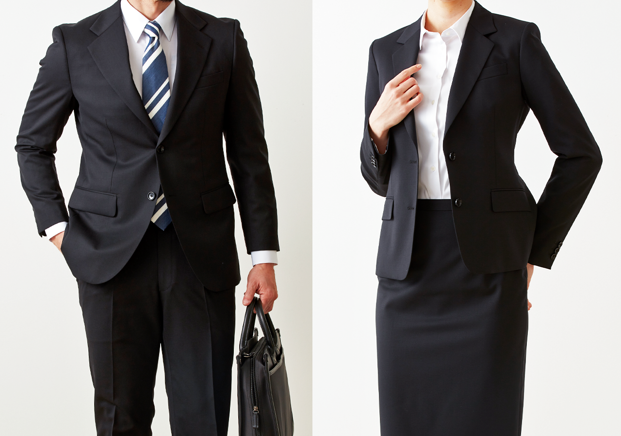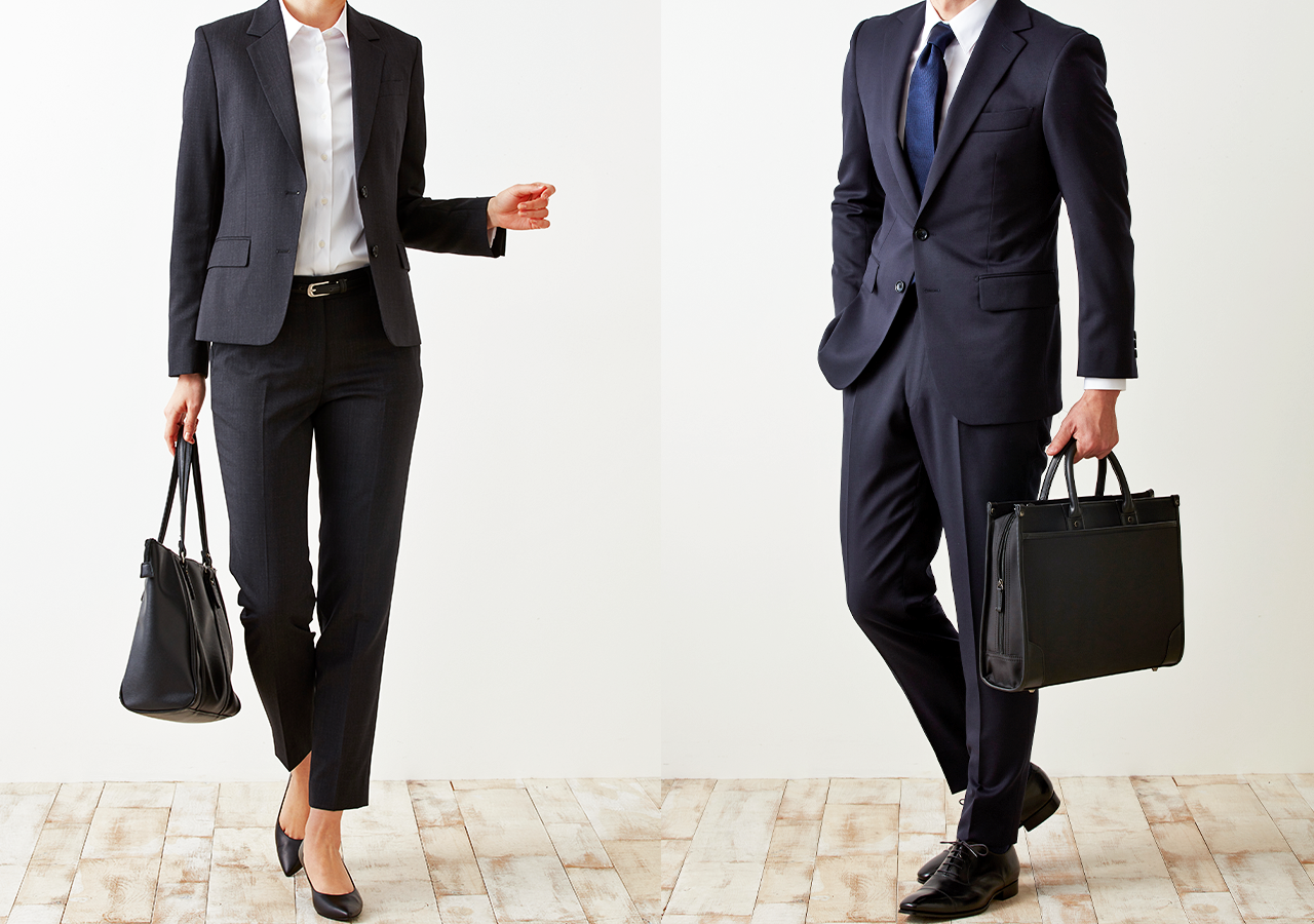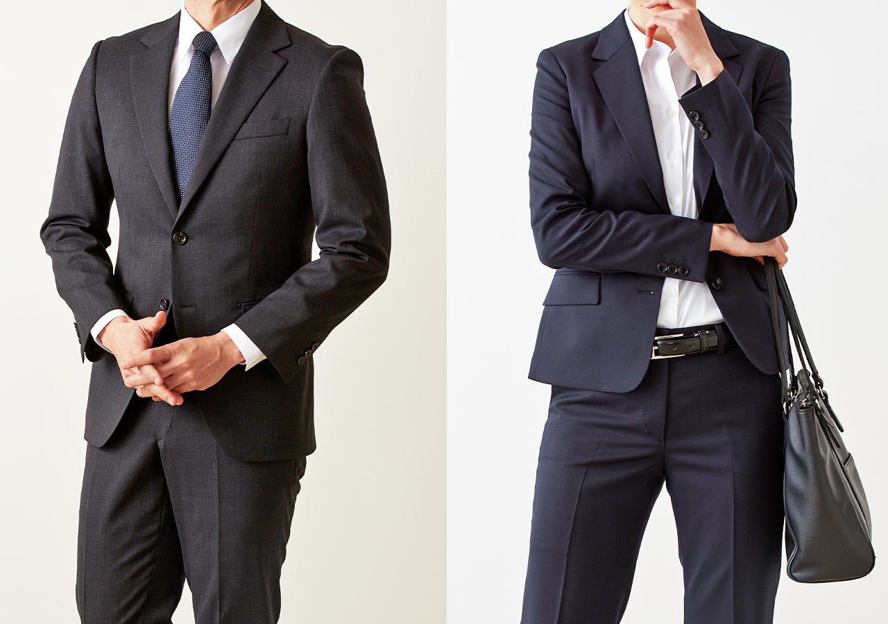 定番なカラー(ブラック、チャコールグレー、ダークネイビー)はもちろん、ストライプや光沢があるスーツなら長く着用できます。