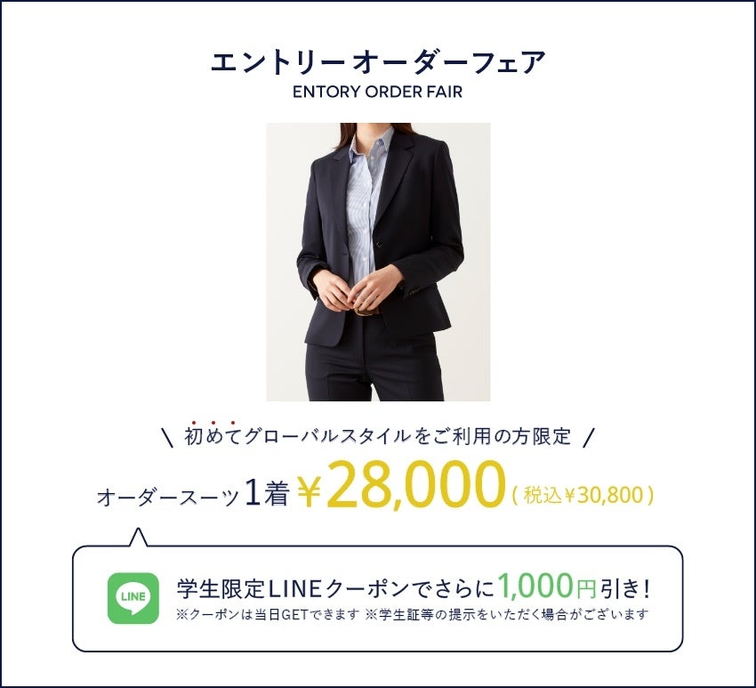 グローバルスタイルのLINE公式アカウントを友だち追加することで「1,000円OFF」の割引クーポンをプレゼントいたします。