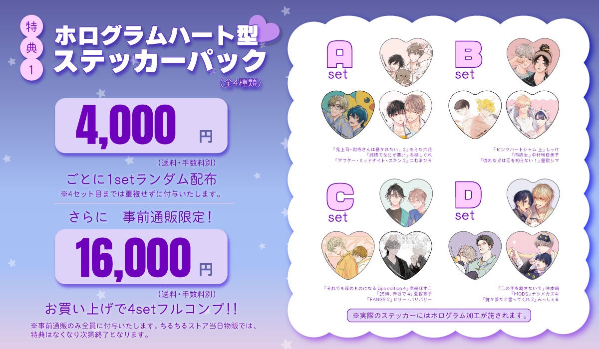 ※事前通販では、ご購入いただいた方全員に特典を付与いたします。ちるちるストア当日物販では、特典はなくなり次第終了となります