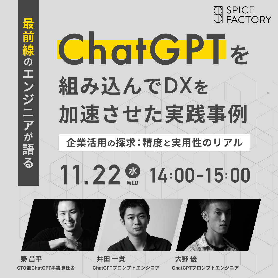 【11/22(水)開催】最前線のエンジニアが語る ChatGPTを組み込んでDXを加速させた実践事例
