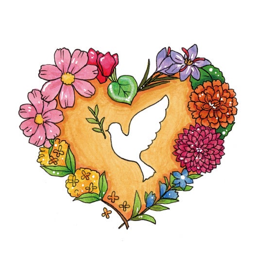 中央には、平和の象徴である白い鳩をデザインしました。