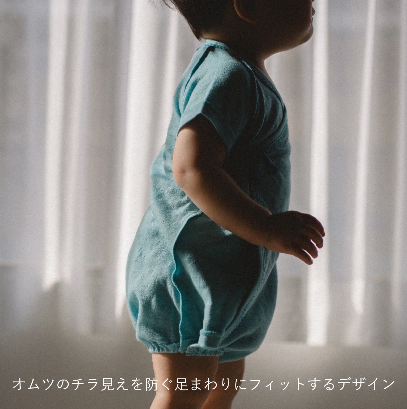 さらに、気になるオムツのチラ見えも防ぐ足まわりの設計。バルーン型のかわいらしいシルエットに。