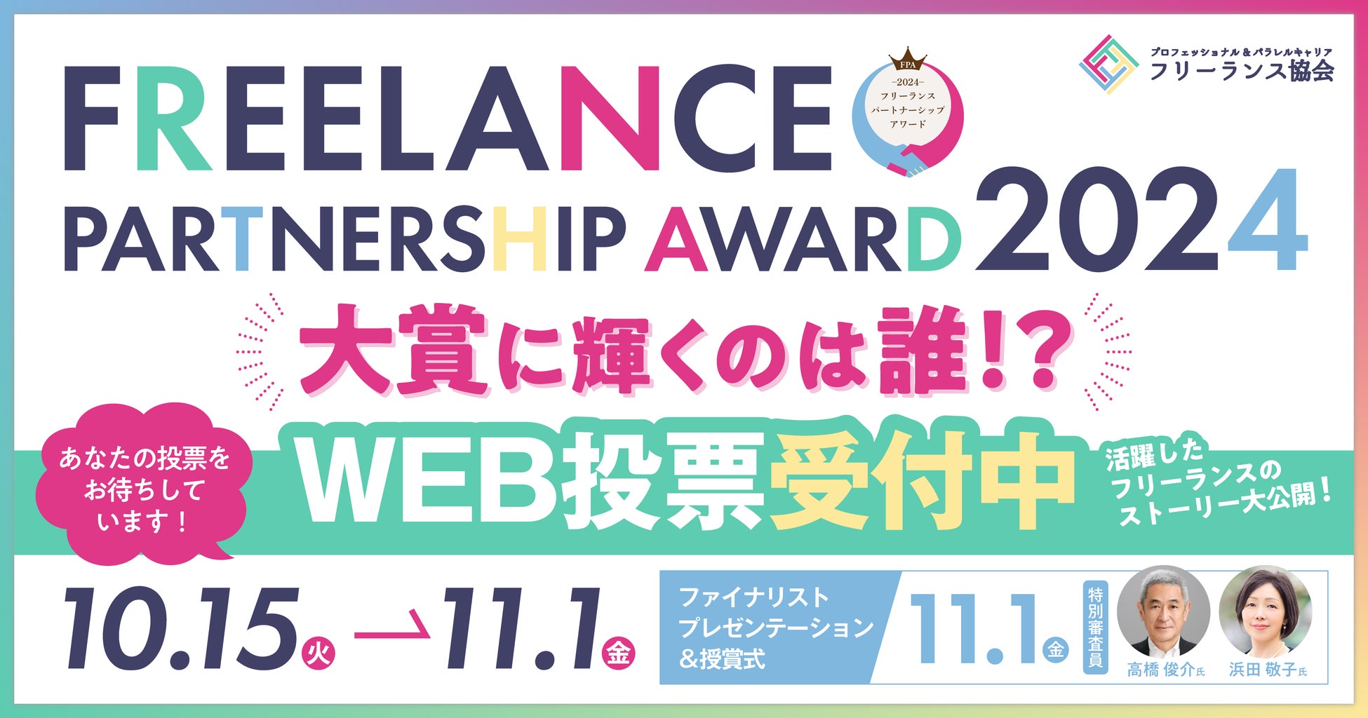 【プレスリリース】ファイナリスト発表&WEB投票開始!フリーランスパートナーシップアワード2024(経済産業省後援)
