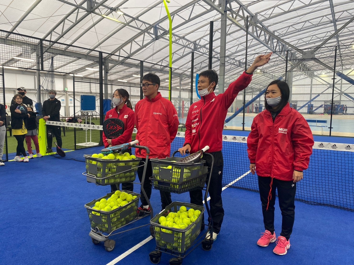 また、午前中には、日本代表メンバーがパデル日本代表チームのパートナーである三菱UFJフィナンシャルグループ様の社員と一般参加者にパデルのレッスン会を実施いたしました。