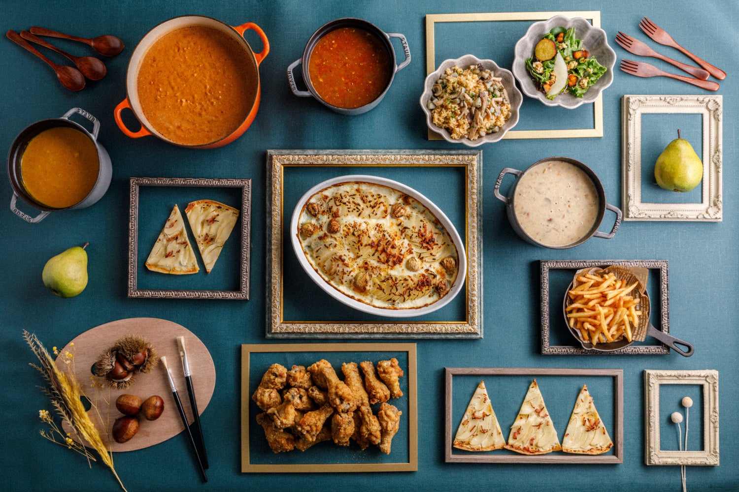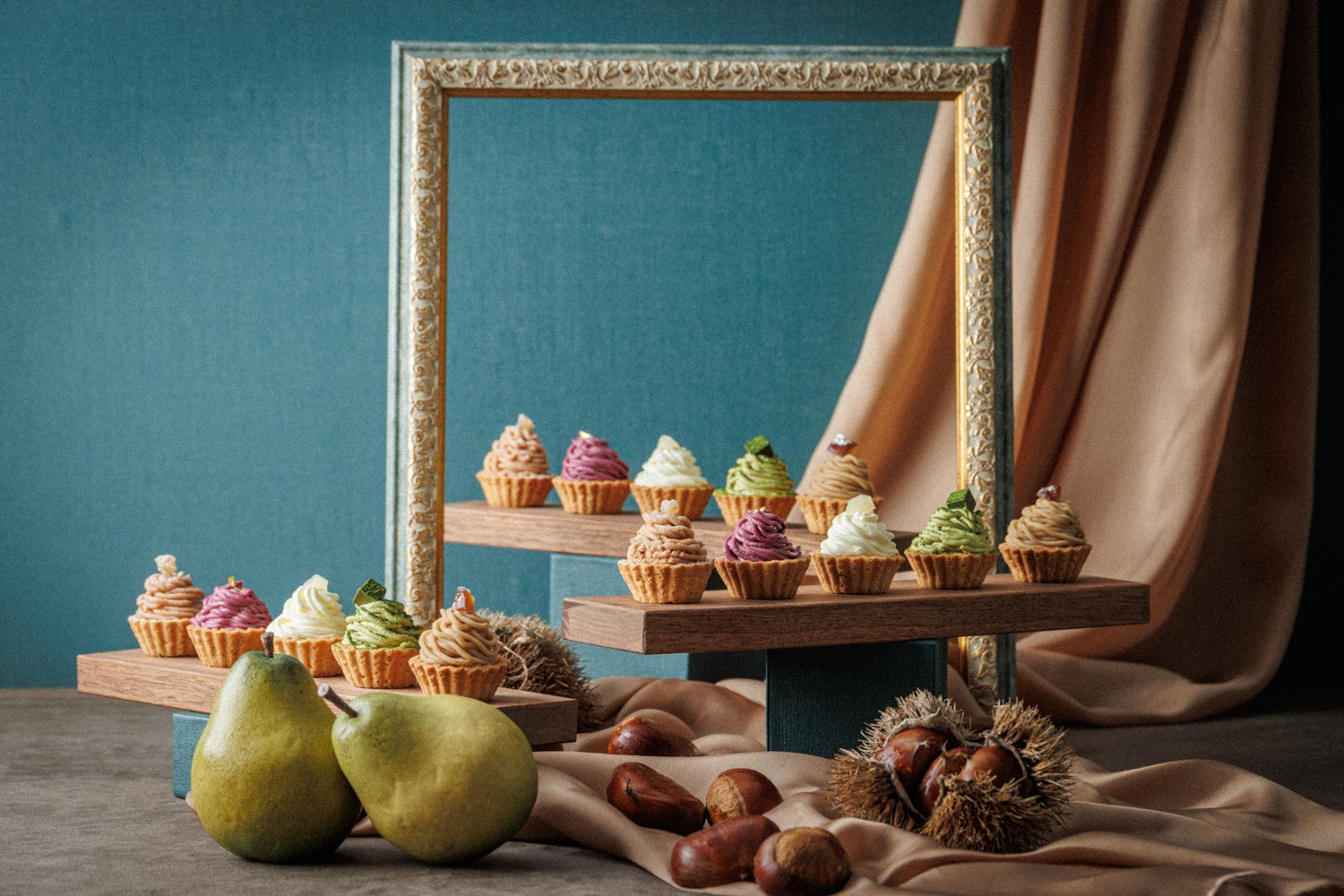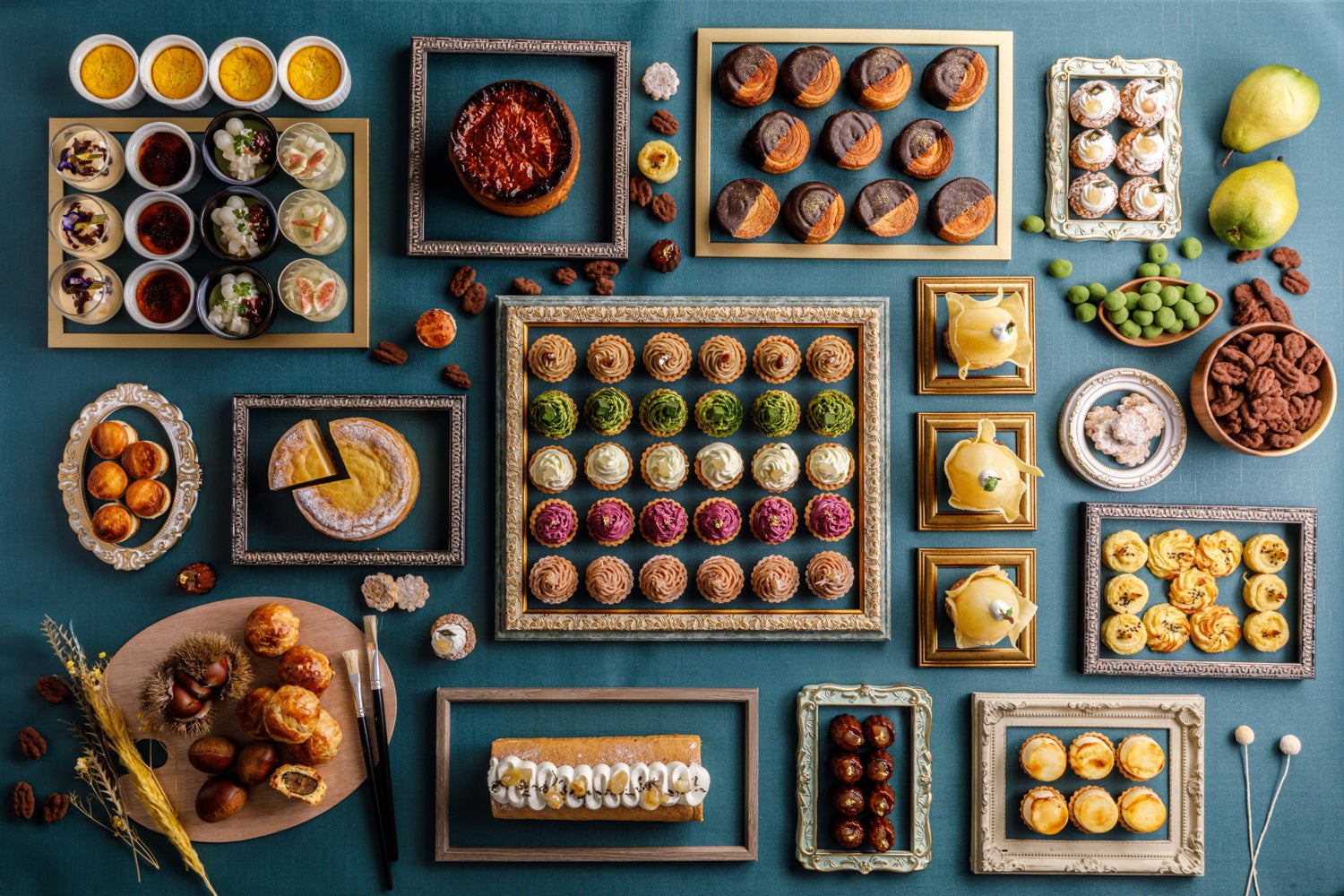 洋梨のベルエレーヌ・洋梨とキャラメルのシブースト・洋梨とプラリネのシュークリーム・洋梨と紅茶の モチっとロールケーキ・洋梨のチーズケーキ・洋梨のクイニーアマン・和梨ジュレ・和梨と抹茶のぜんざい・栗のガトーバスク・カヌレマロン・マロンパイ・スイートポテト・ブルトンヌバターサンド・ボルボロン・ピーカンナッツチョコ・抹茶チョコ