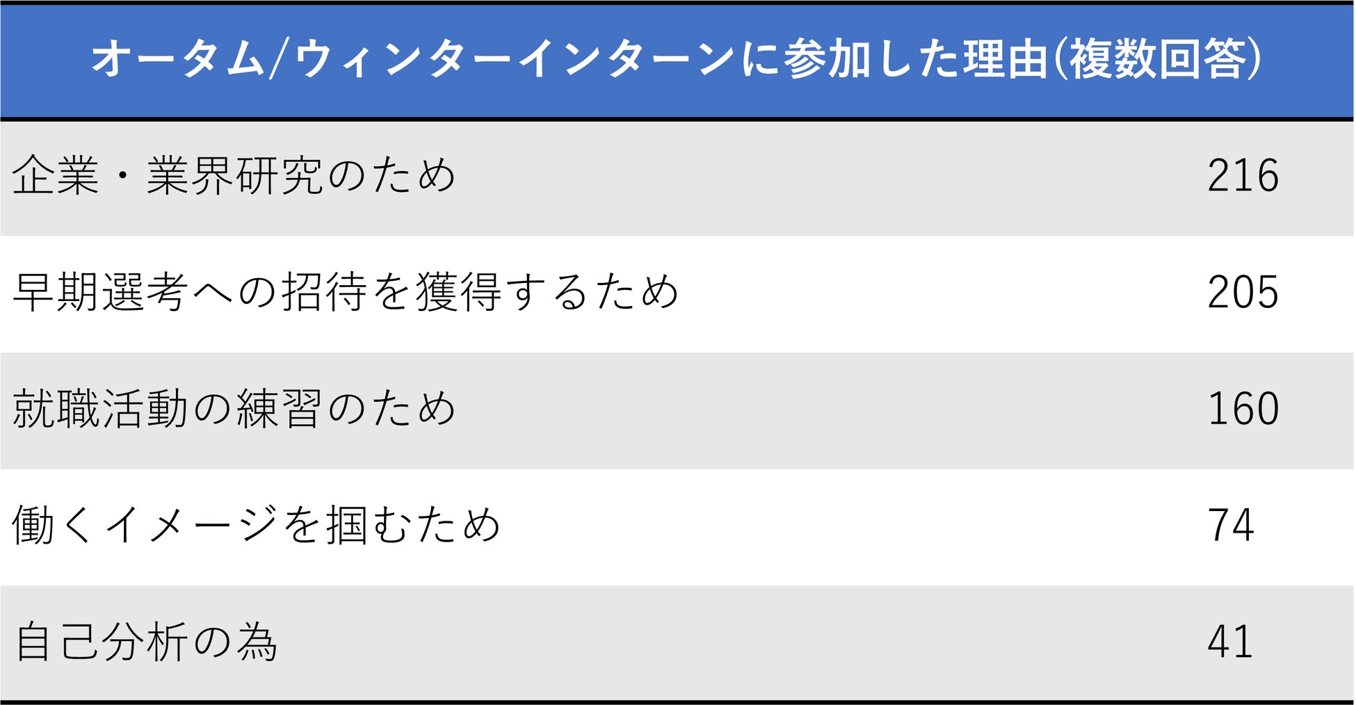 - オータム/ウィンターインターン参加は選考への実用的手段