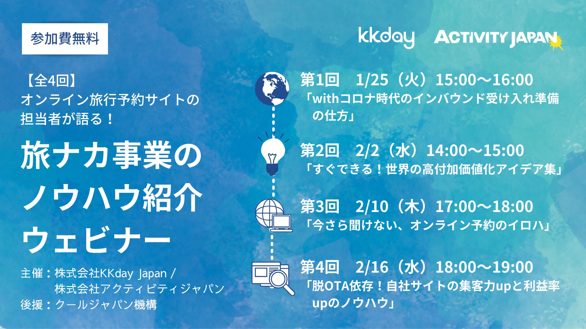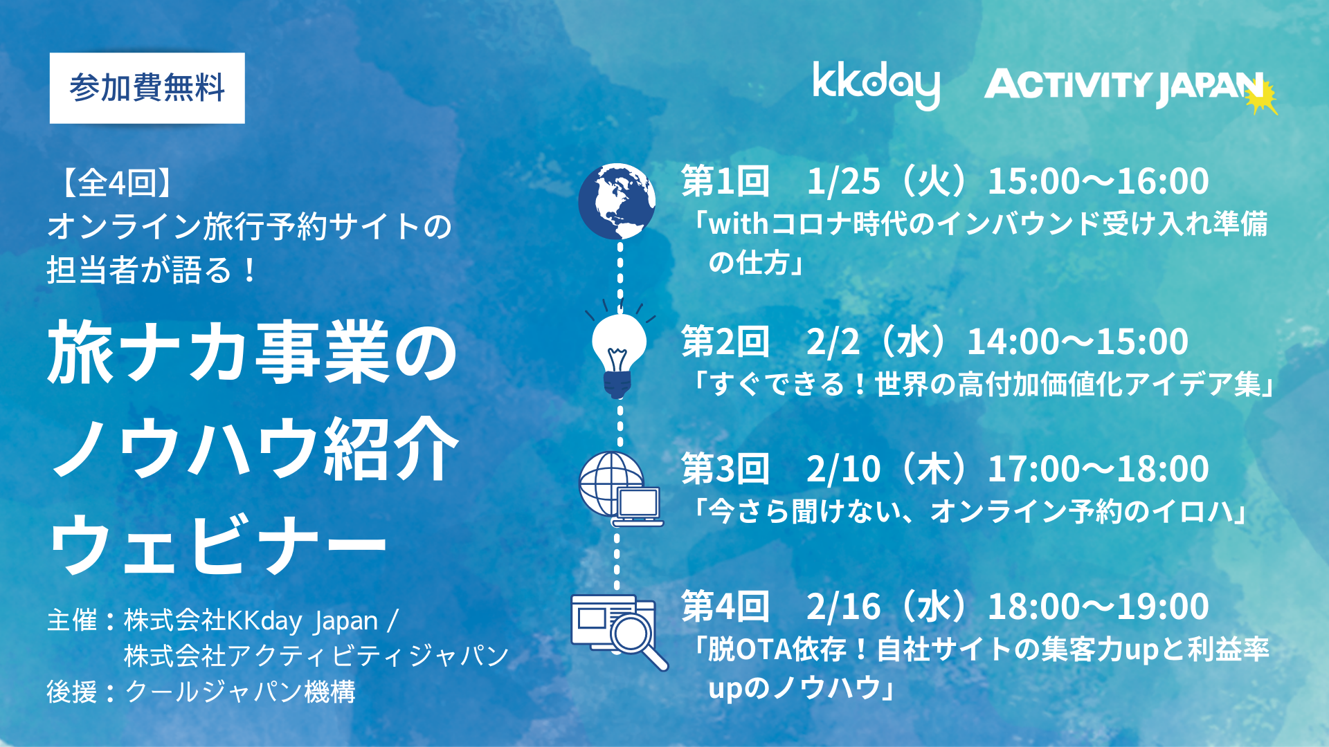 KKdayとアクティビティジャパン、連続ウェビナー「旅ナカ事業のノウハウ紹介セミナー」を1/25(火)より開催
