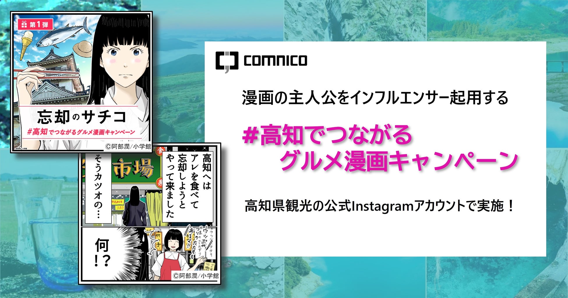 株式会社ラバブルマーケティンググループ(本社:東京都港区、代表取締役社長:林 雅之)の子会社で、企業のSNSマーケティングを支援する株式会社コムニコ(本社:東京都港区、代表取締役:長谷川 直紀、以下「コムニコ」)が企画する、著名漫画の主人公(イラスト)をインフルエンサーとして起用するSNSキャンペーン「#高知でつながるグルメ漫画キャンペーン」が、高知県観光の公式Instagramアカウント「高知観光official」(@naturallykochi)で、12月12日(月)18時からスタートいたします。今回のように、出版されている漫画の登場人物をインフルエンサーとして起用するキャンペーンの企画・実施は、コムニコとしても「高知観光official」アカウントとしても、初めての試みです。