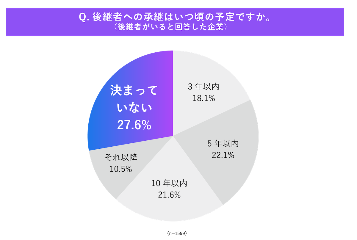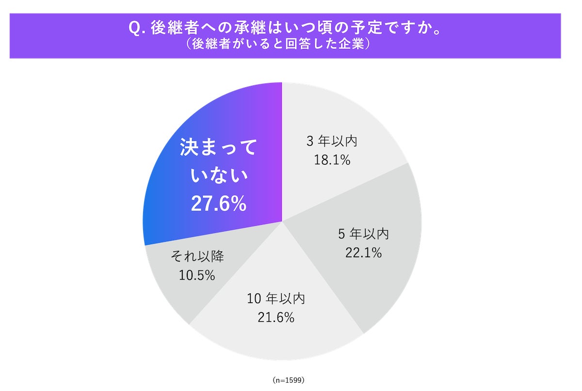 後継者候補が「いる」と回答した企業のなかでは承継時期が「未定(27.6%)」と回答した企業の割合が約3割で最も高く、後継者候補は決まっていても具体的な事業承継の検討は全体的に進んでいないことがうかがえます。