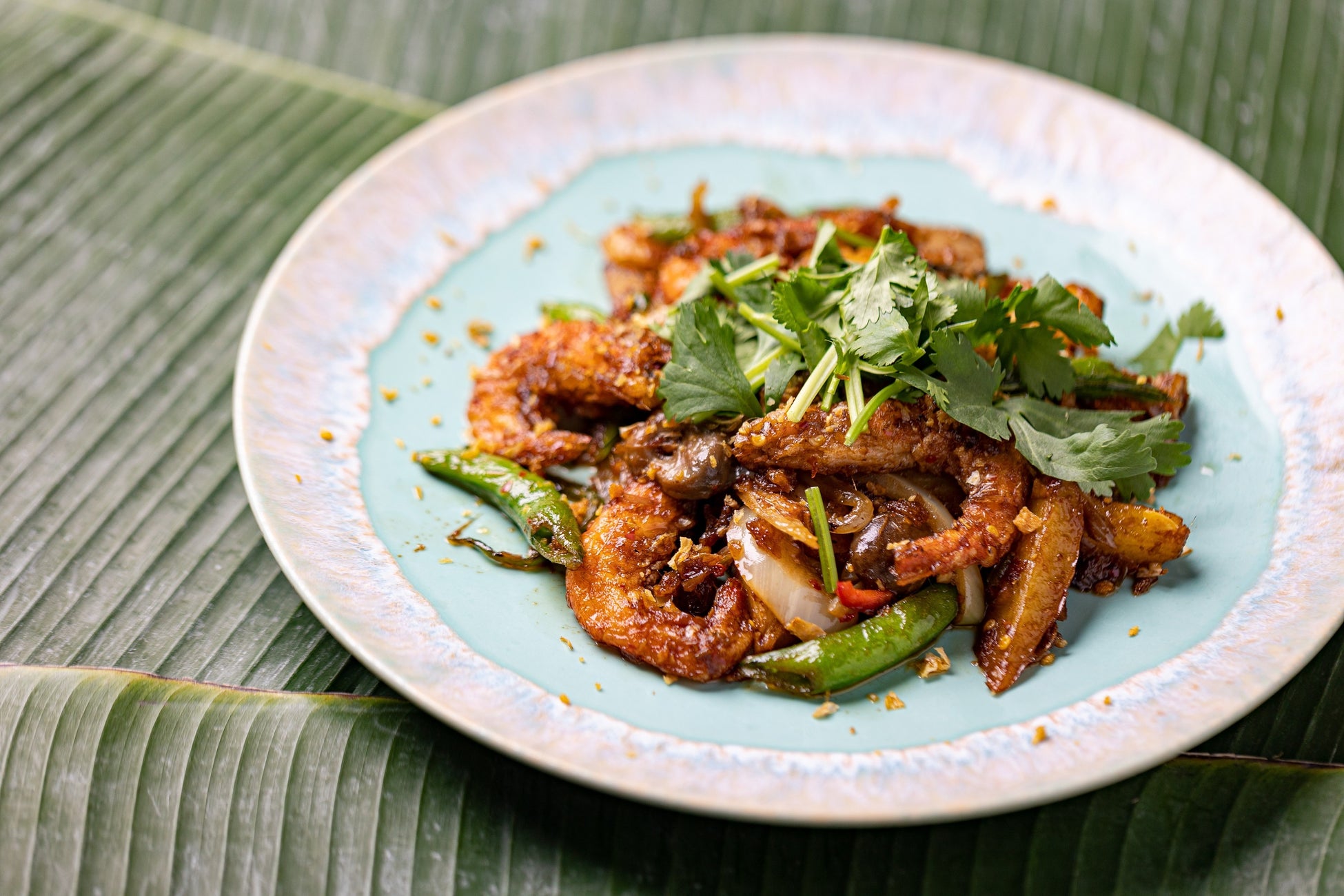▶︎ソフトシェルシュリンプと新ジャガイモのガーリックレモングラスチリ炒め 1,800円