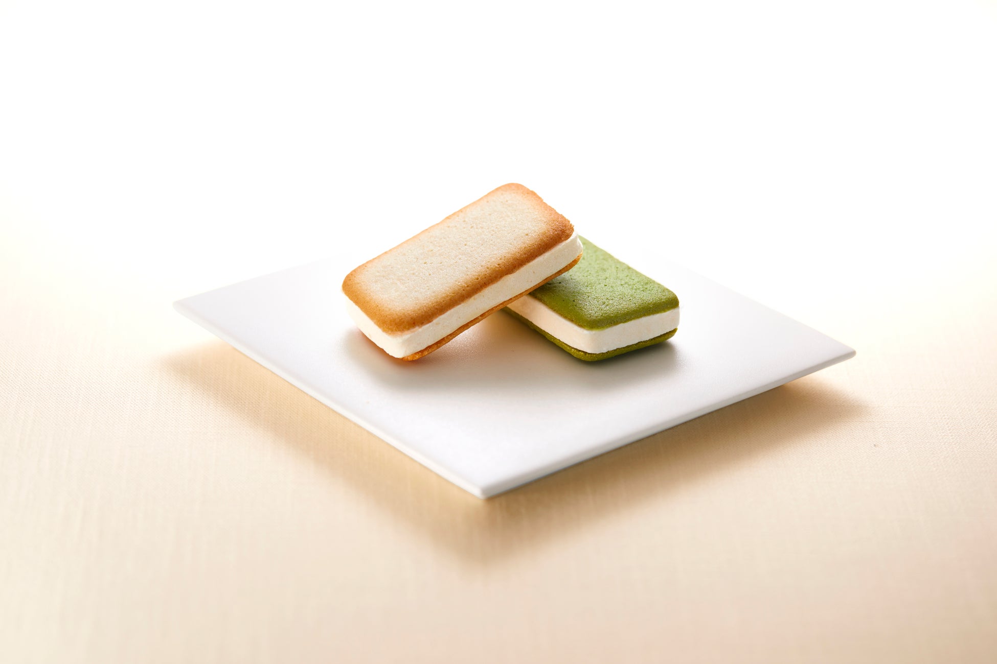 淡く優しい食感の淡雪に、2枚のうすく繊細に焼き上げたラング・ド・シャを重ねた「本実堂サンド」。
