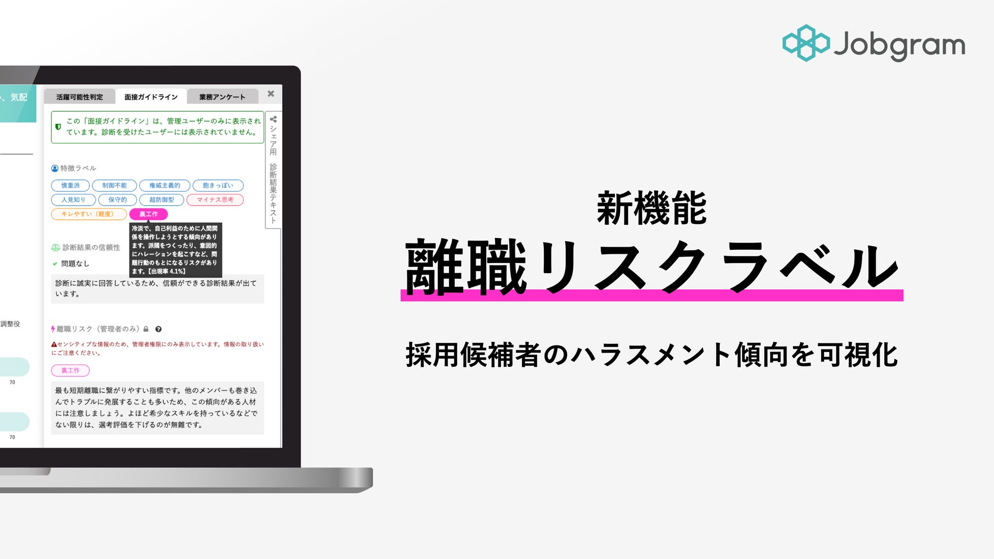 【Jobgram適性検査】採用候補者のハラスメント傾向を予測する新機能「離職リスクラベル」をリリース