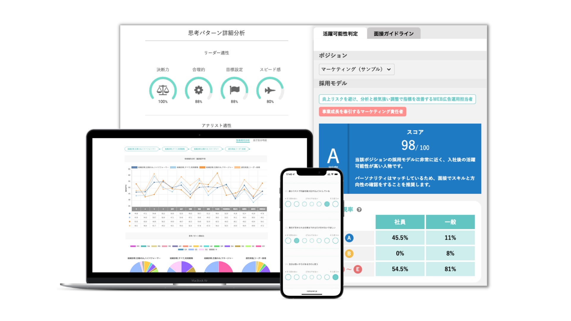 Jobgram適性検査では、性格診断をもとに従業員や採用候補者の特性を可視化し、採用の判断材料やマネジメントに活用できる情報を提供しています。