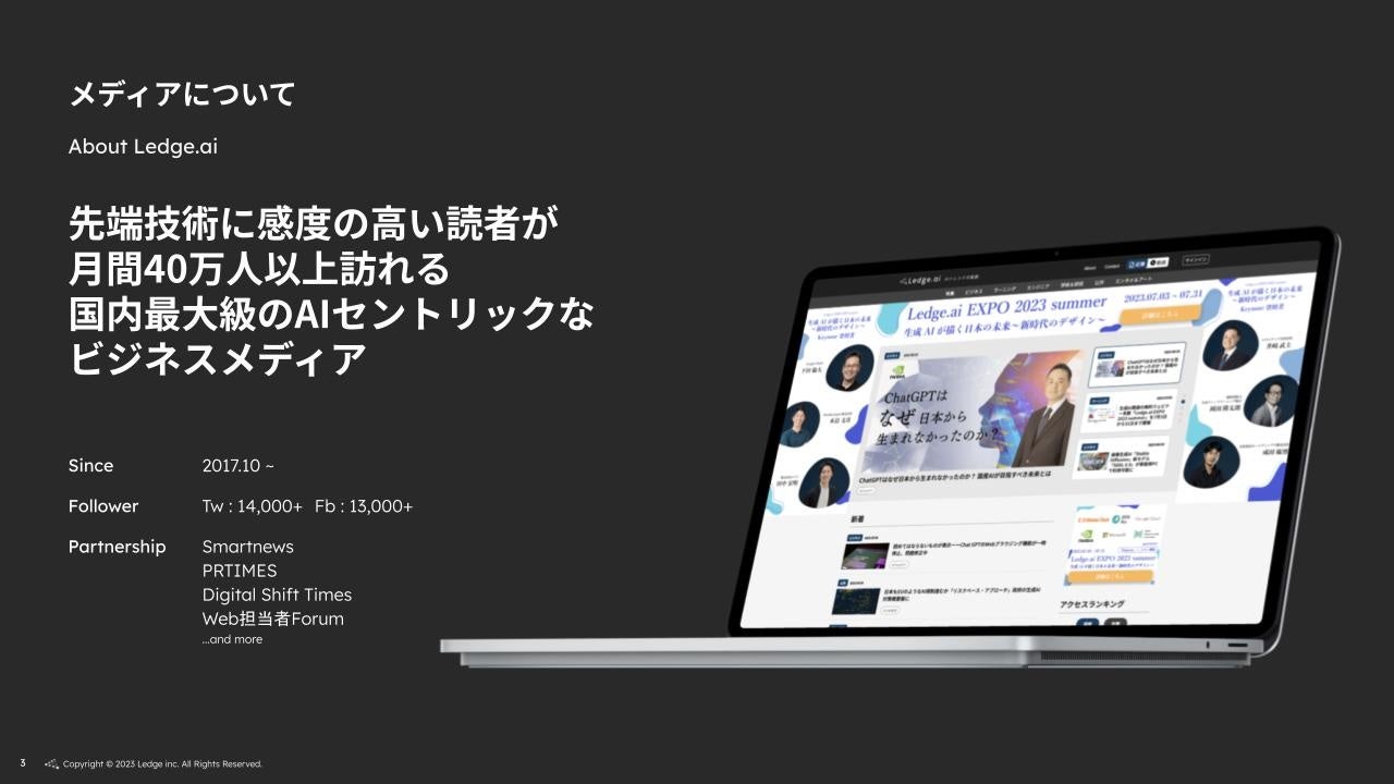 Ledgeは2017年10月に、現在では国内最大級の読者数を誇るAI関連メディア「Ledge.ai(レッジエーアイ)」の創刊とともにスタートしました。