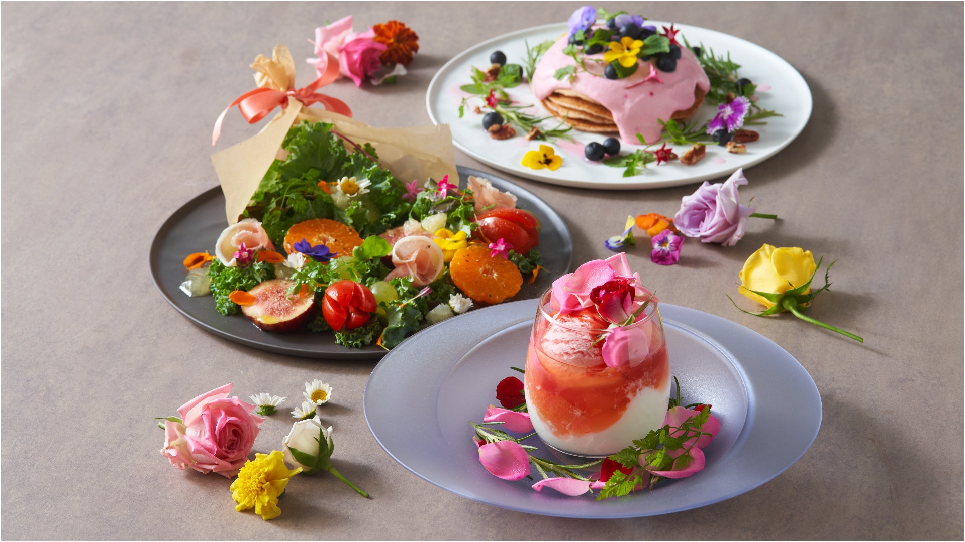 10/1(水)のオープニングでは『花とフルーツのブーケサラダ』『香りを食べるローズパフェ』『華やぐフラワーパンケーキ』の提供がスタート