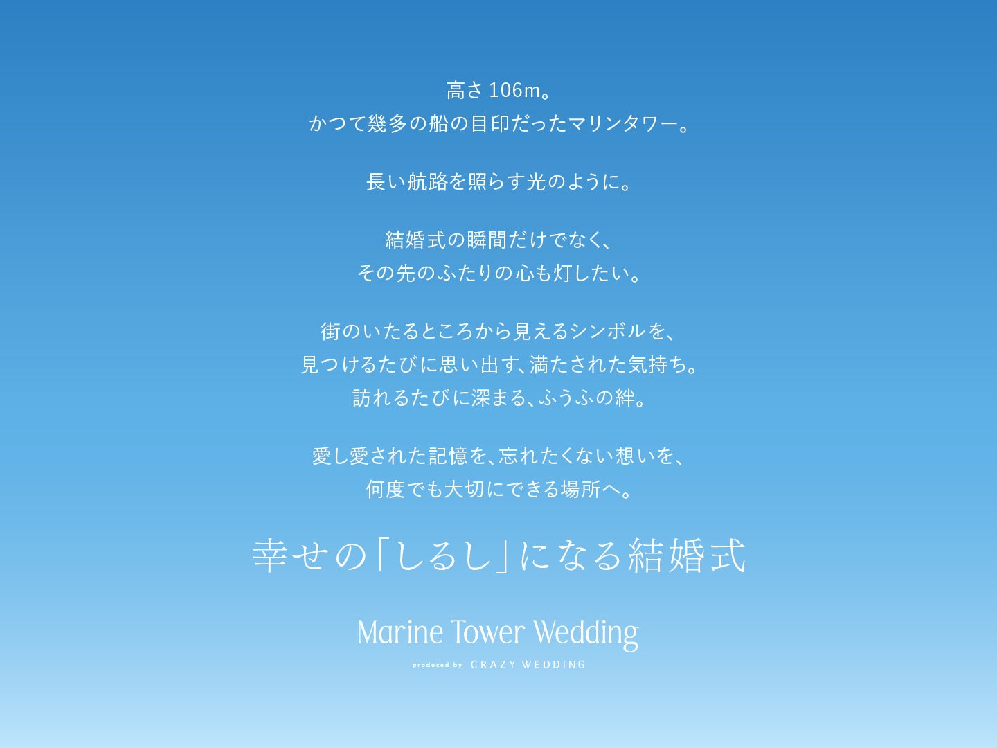 そんな人生に寄り添う灯台のような場所として「MARINE TOWER WEDDING」を新たに位置づけ直しました。