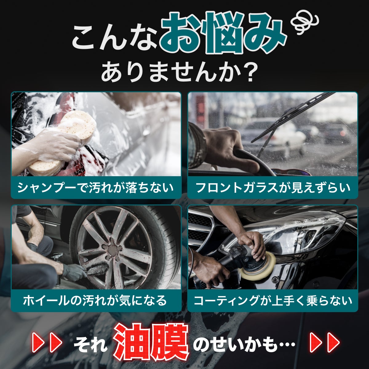 カーシャンプーでは落ちにくい油膜や黒ずみ汚れをすっきり除去。中古車の見た目を整えたいユーザーにもおすすめ