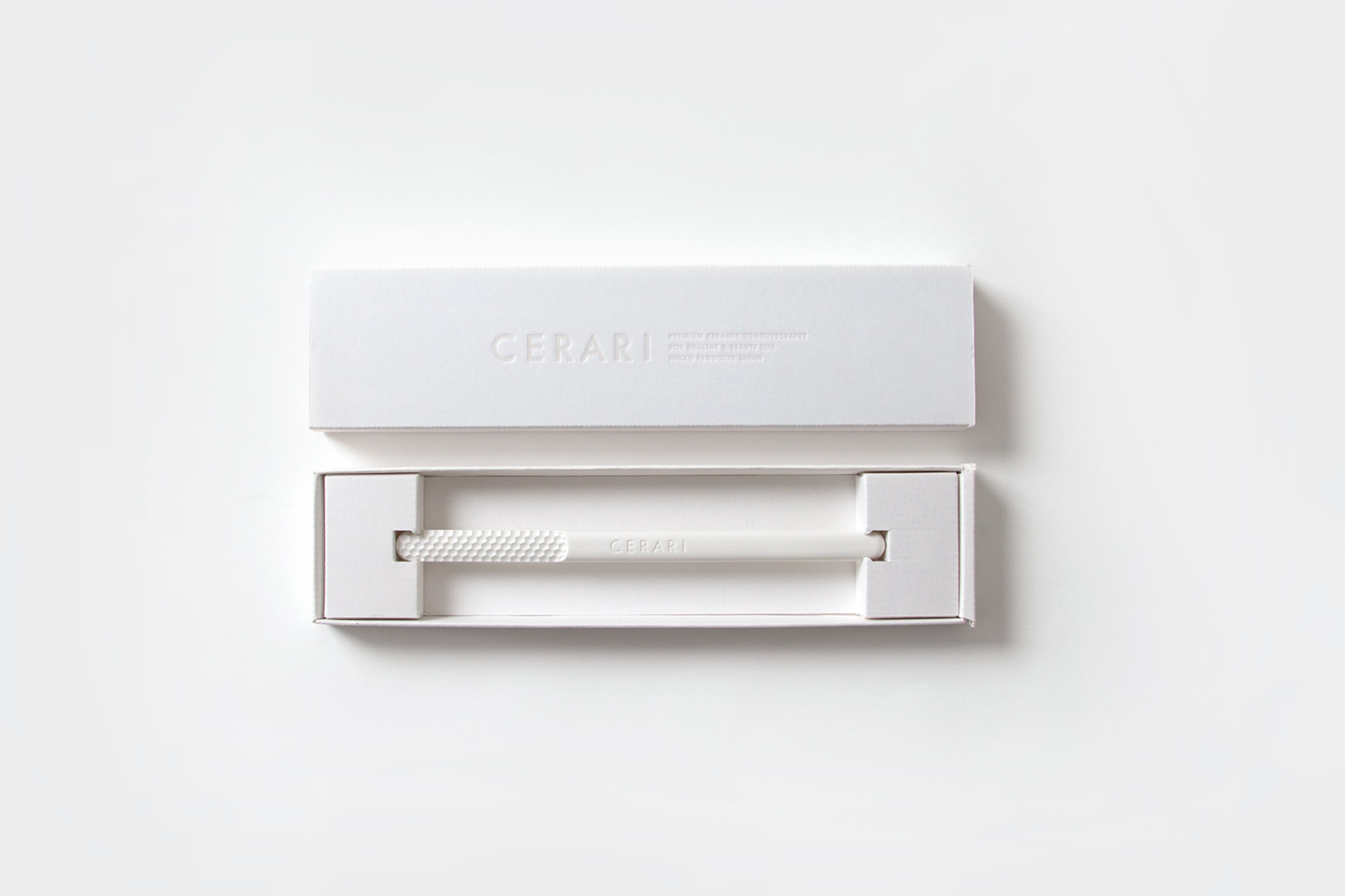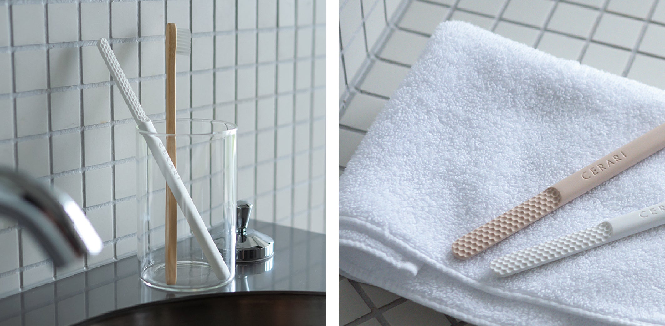 CERARIは、洗面台周りに置かれていても、一見舌クリーナーには見えないシンプルなデザインになっています。舌クリーナーのあまり人に見られたくないと思われがちなイメージをデザインで変え、舌クリーナーをこれからのライフスタイルにナチュラルに取り込みます。