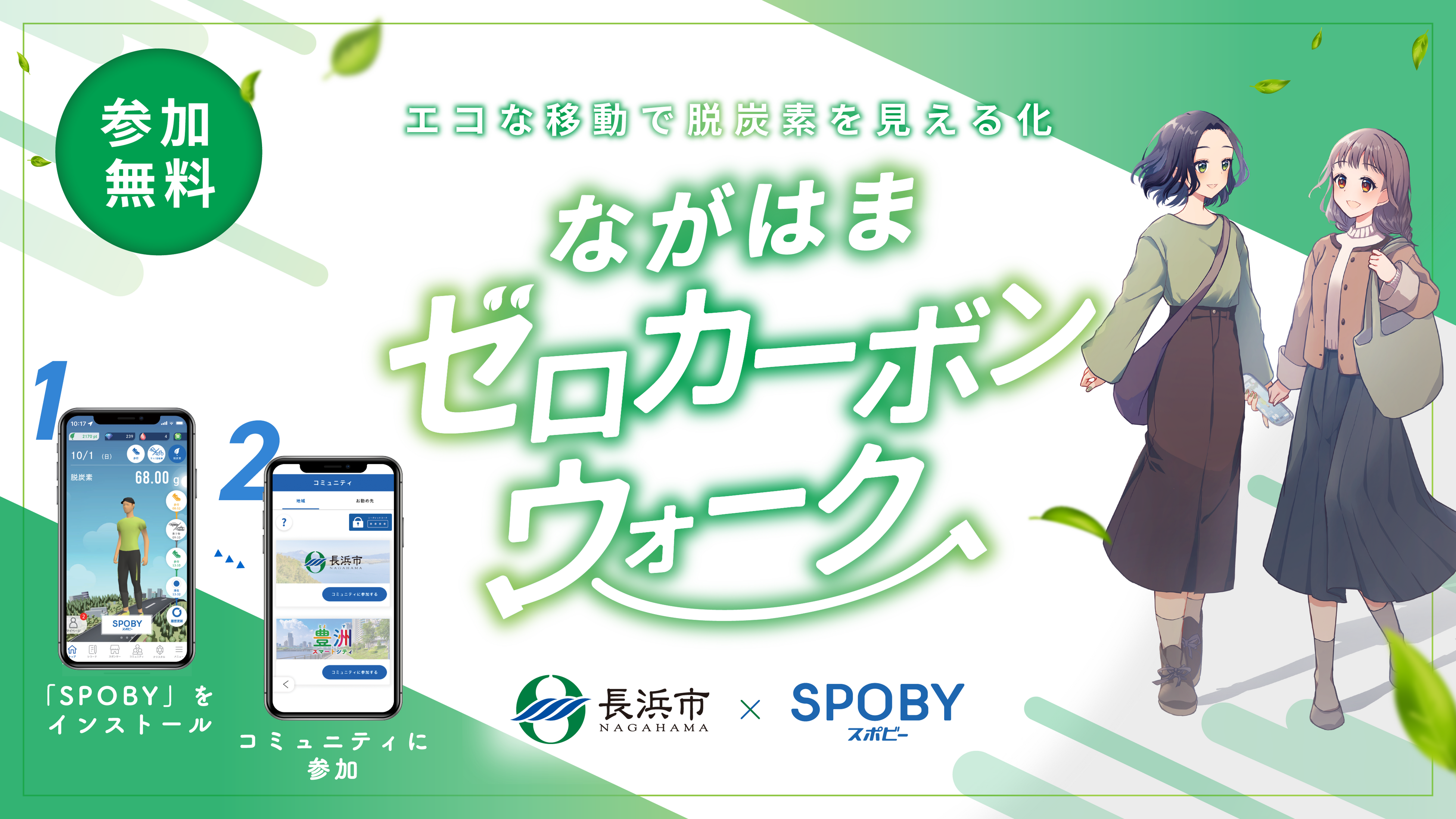 長浜市は、「ゼロカーボンながはま」の実現を目指し、2023年8月1日(火)〜2024年1月31日(水)までの期間でエコライフアプリ「SPOBY」を活用した、市民による脱炭素活動の浸透を図る令和5年度長浜市DX実証実験プロジェクトを実施しています。